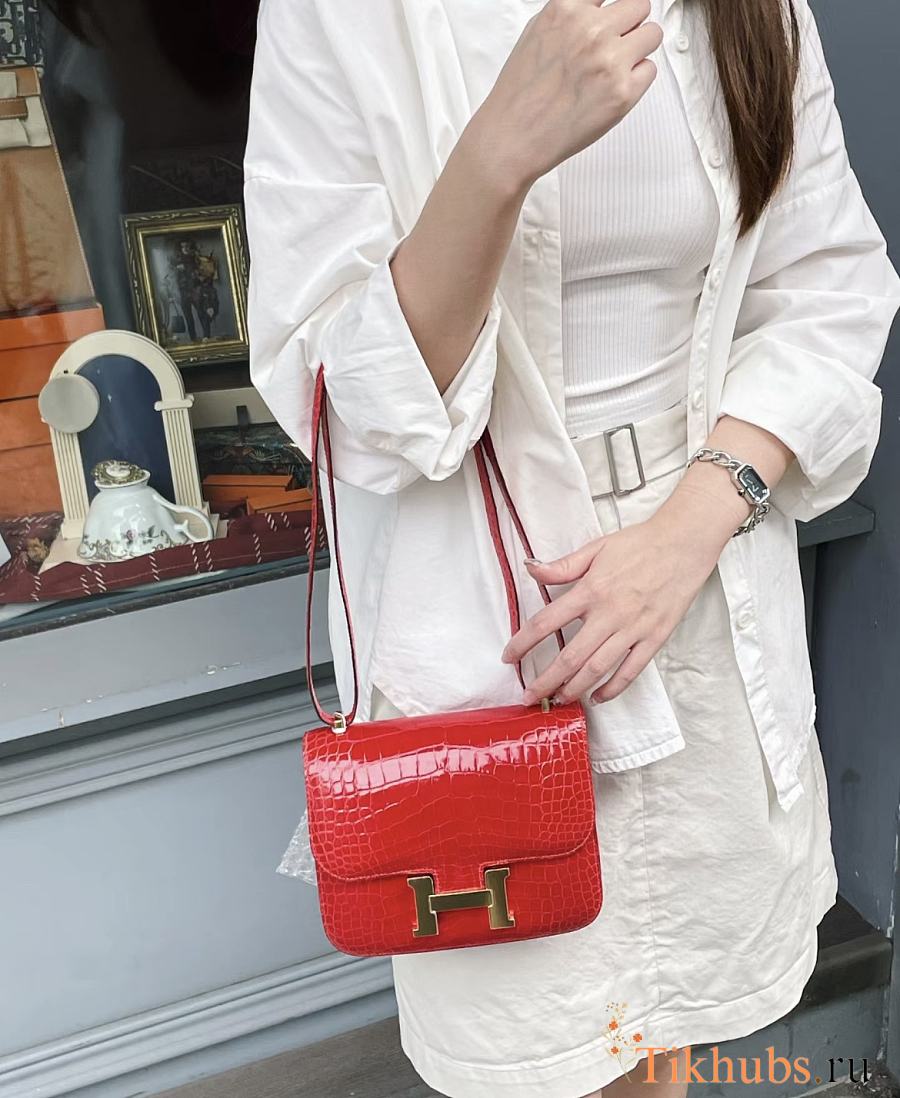 Hermes Constance Crocodile Red Bag 18x15x4cm