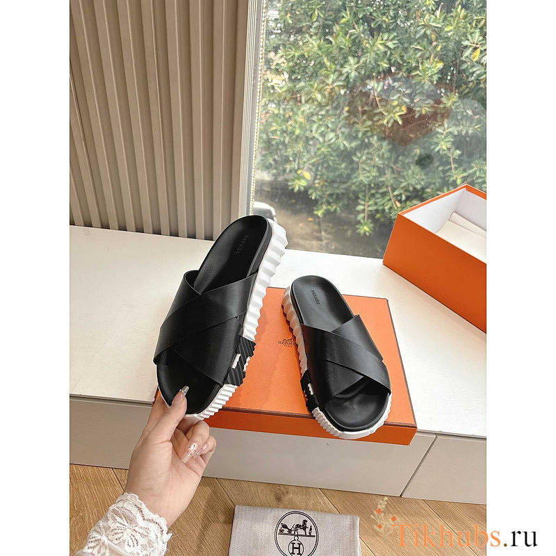 Hermes Infra Sandal Black White