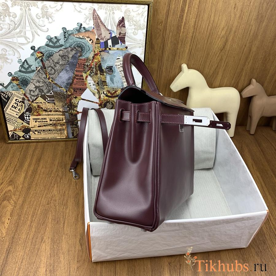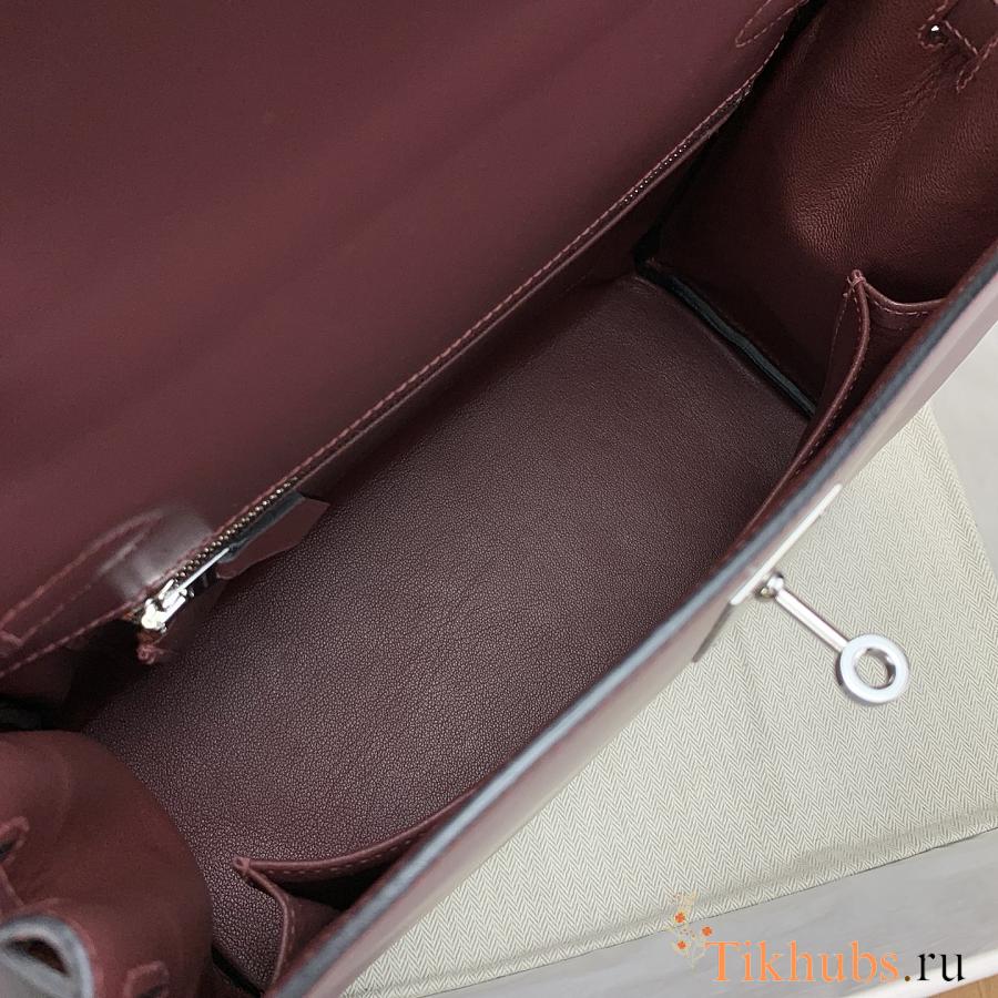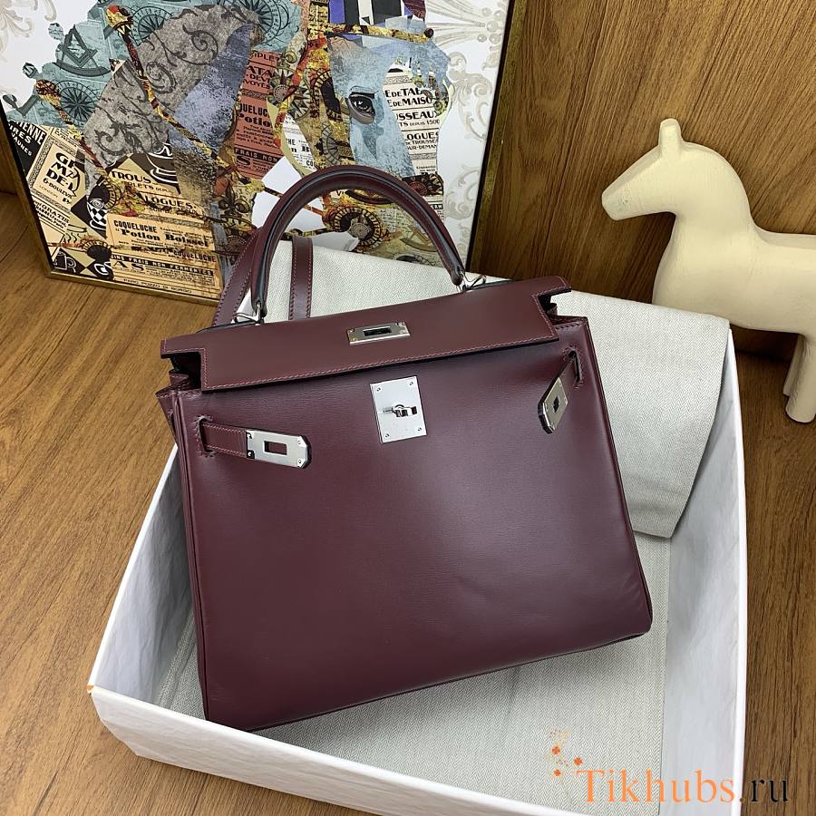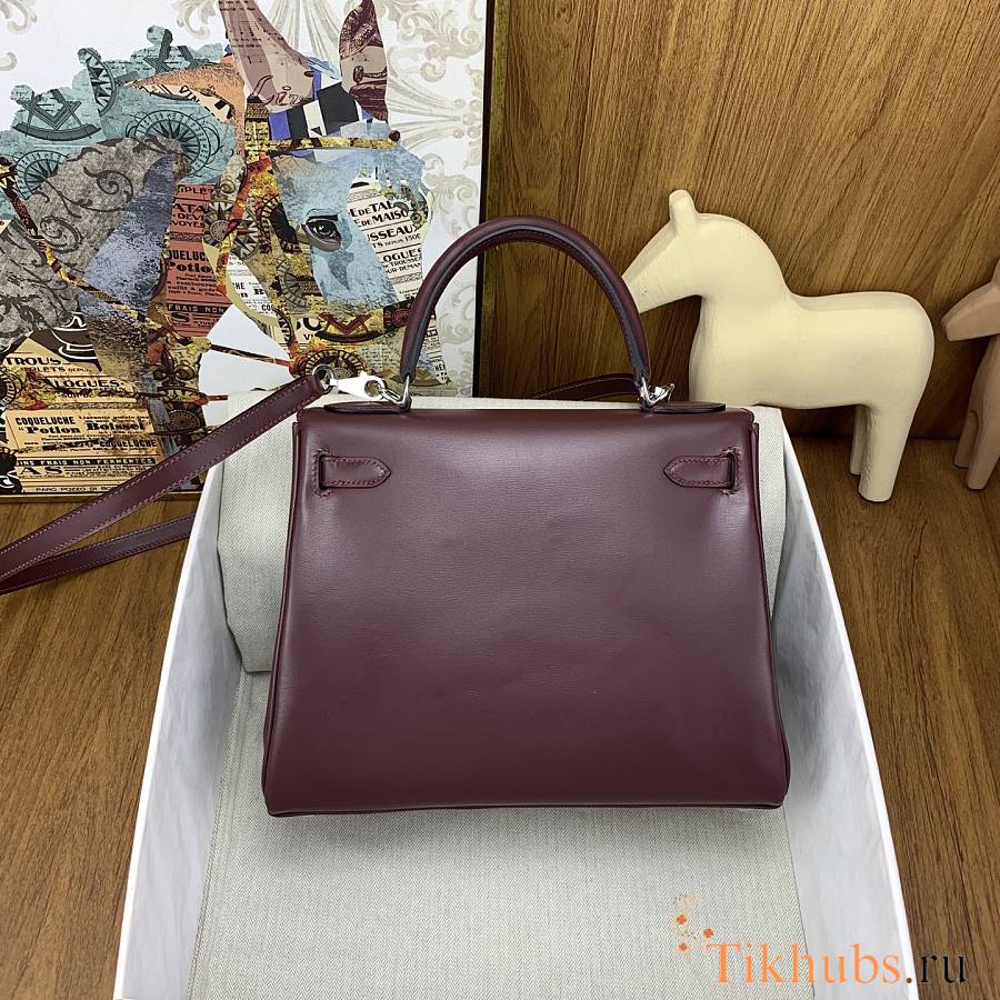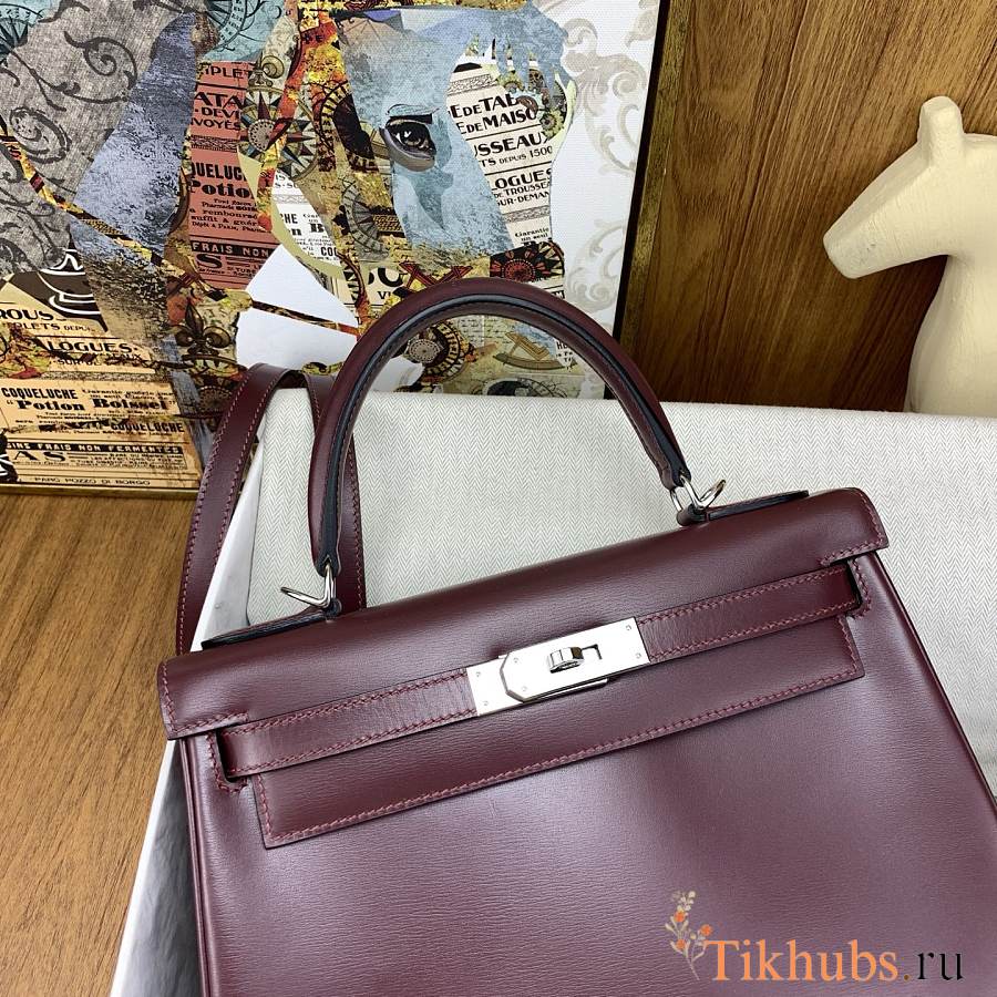 Hermes Kelly 25 Bag Red Wine Box Leather Silver 25cm