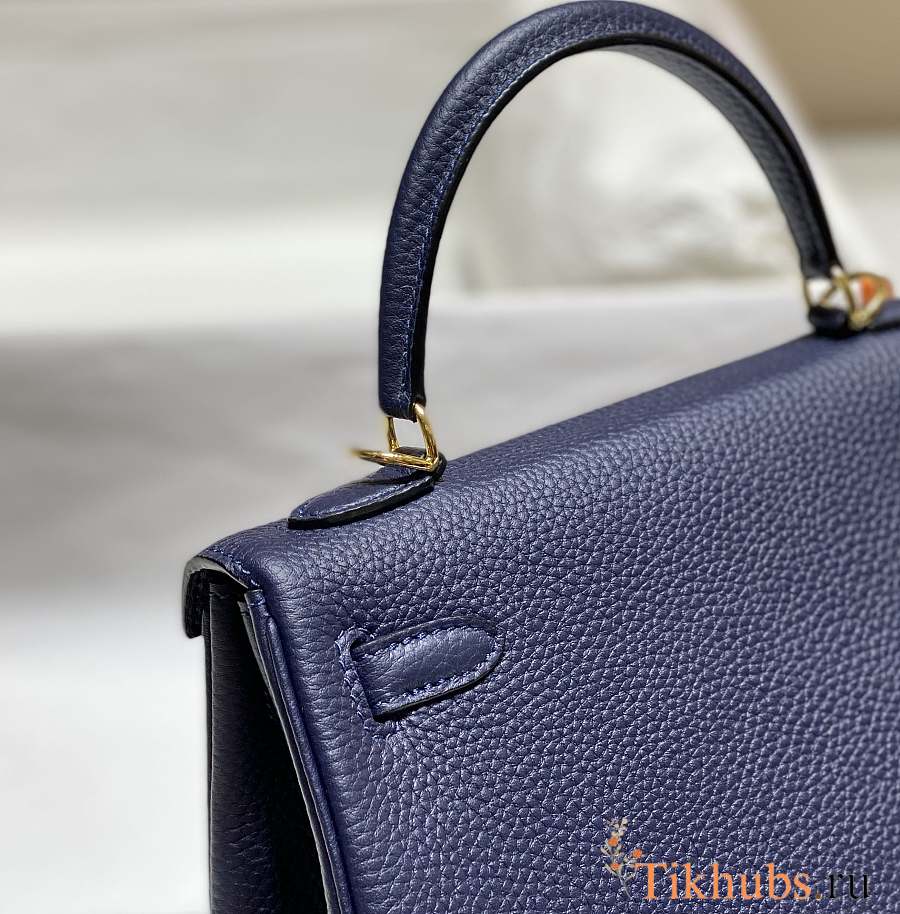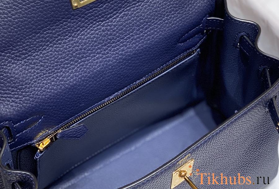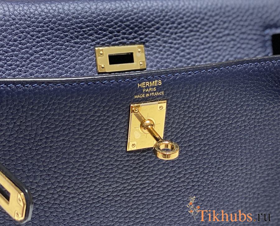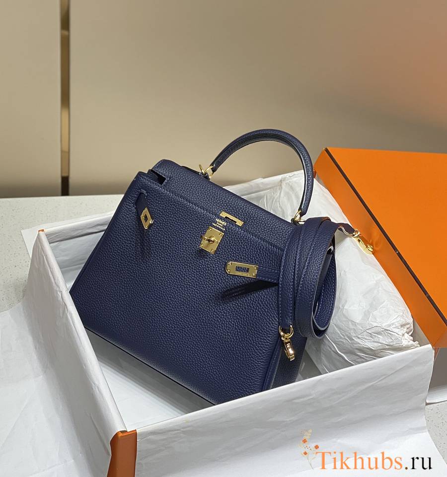 Hermes Kelly 25 Togo Gold Navy Blue Bag 25cm