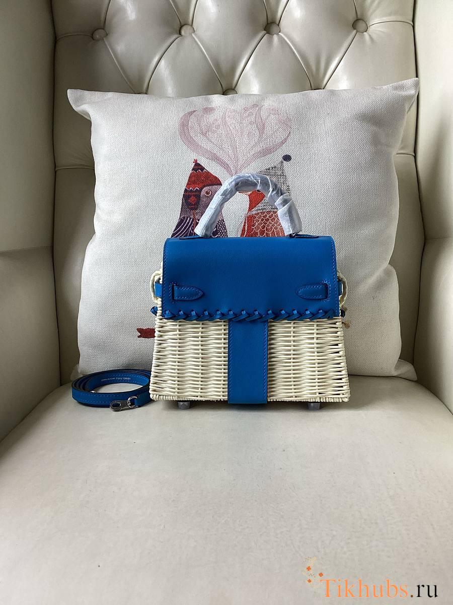 Hermes Kelly Picnic Mini Bag Blue Silver 19cm