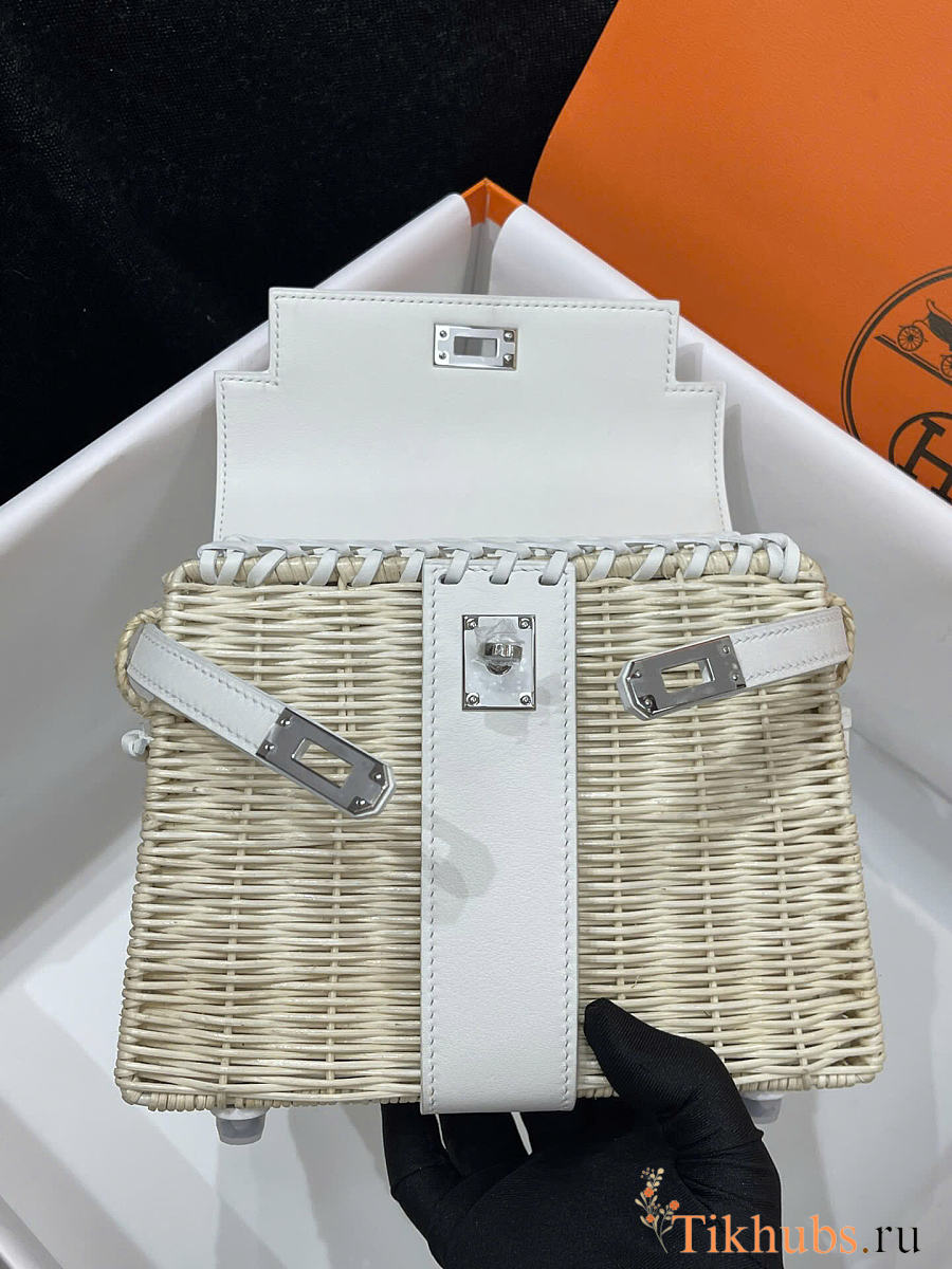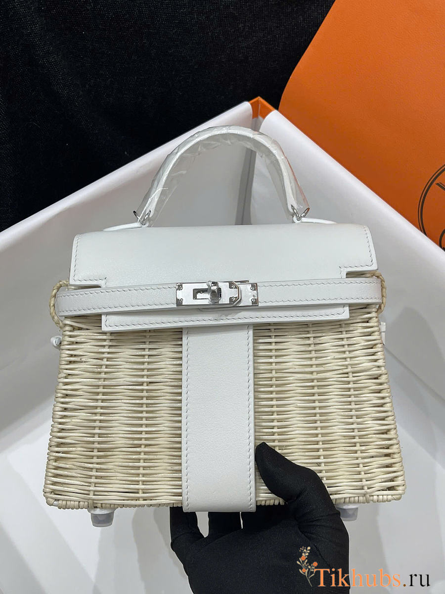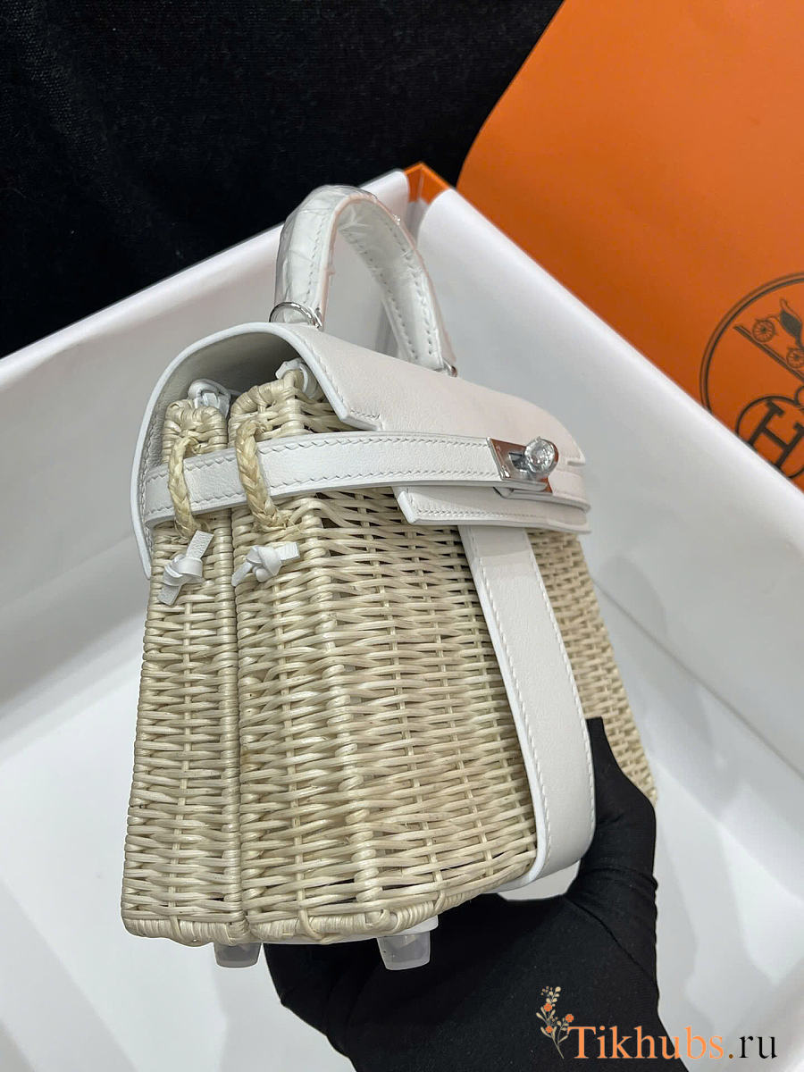 Hermes Kelly Picnic Mini Bag White Silver 19cm