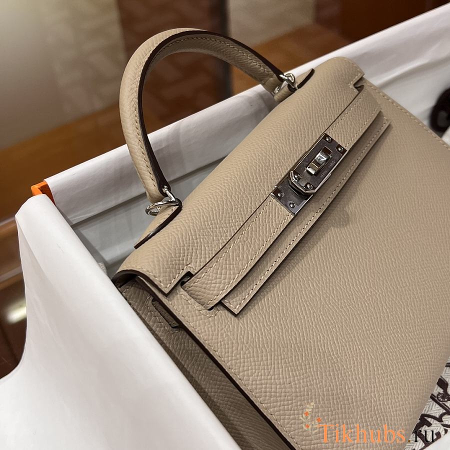 Hermes Mini Kelly 19 Nude Epsom Silver 19cm