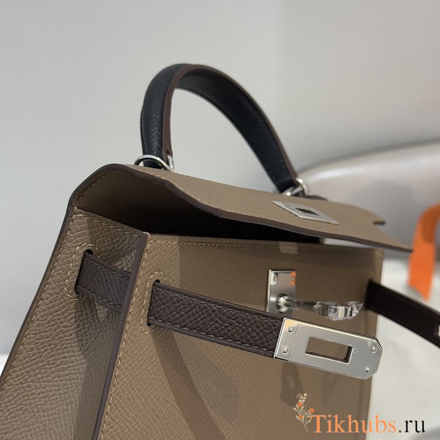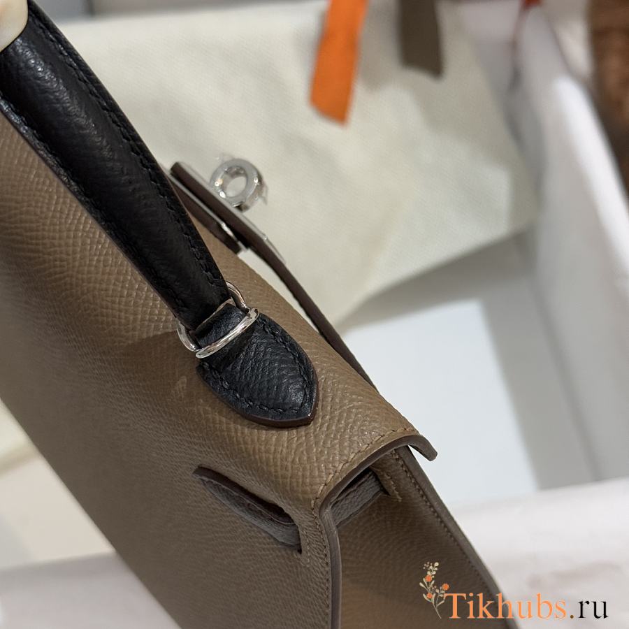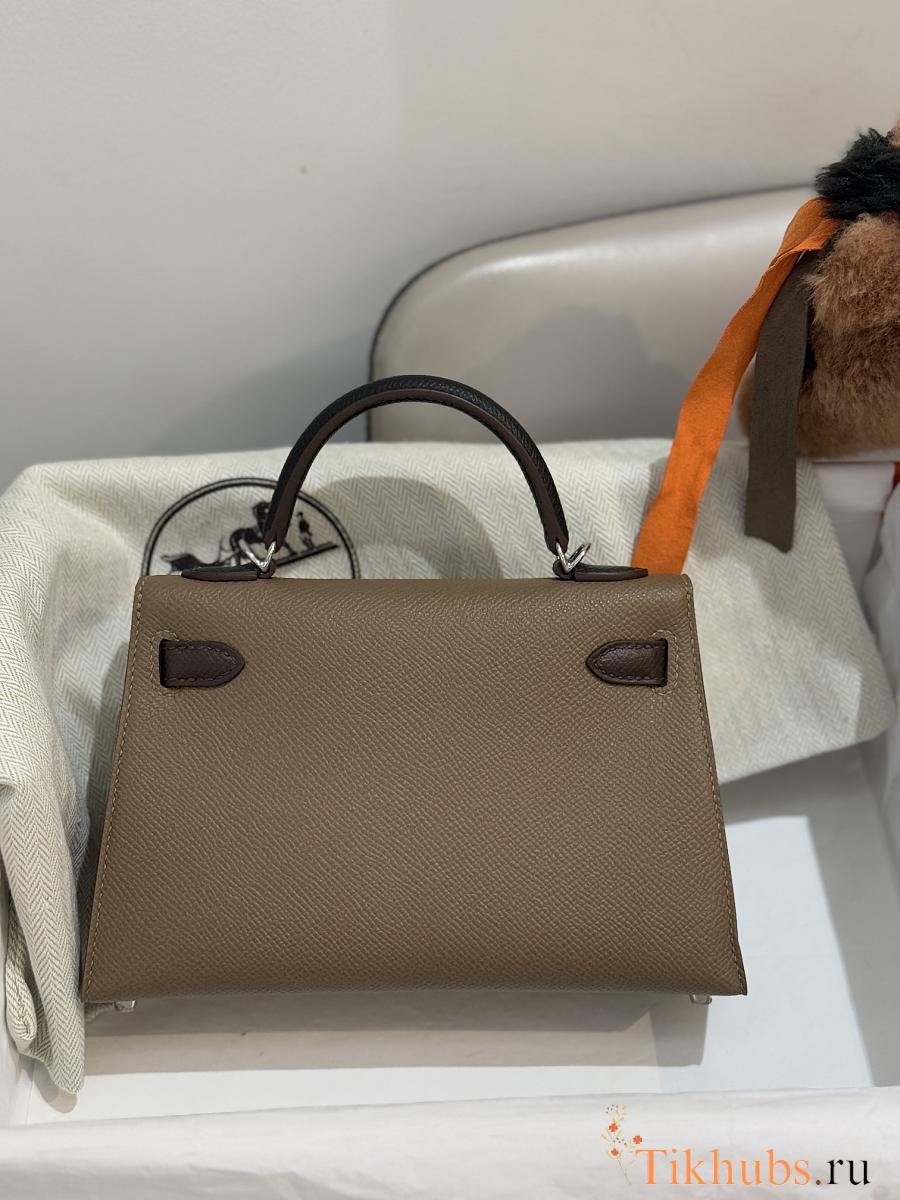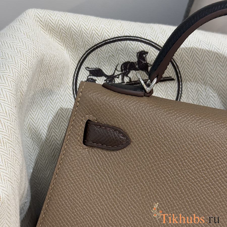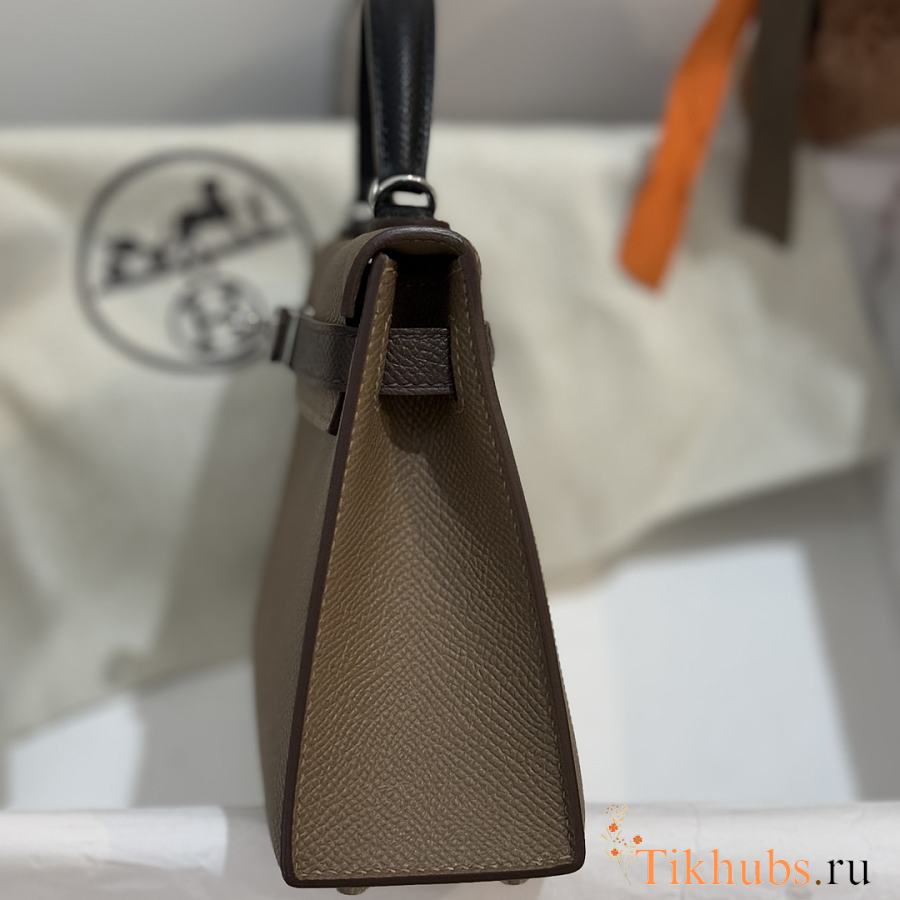 Hermes Mini Kelly Bag Tricolor Etoupe Ecorce Silver 19cm