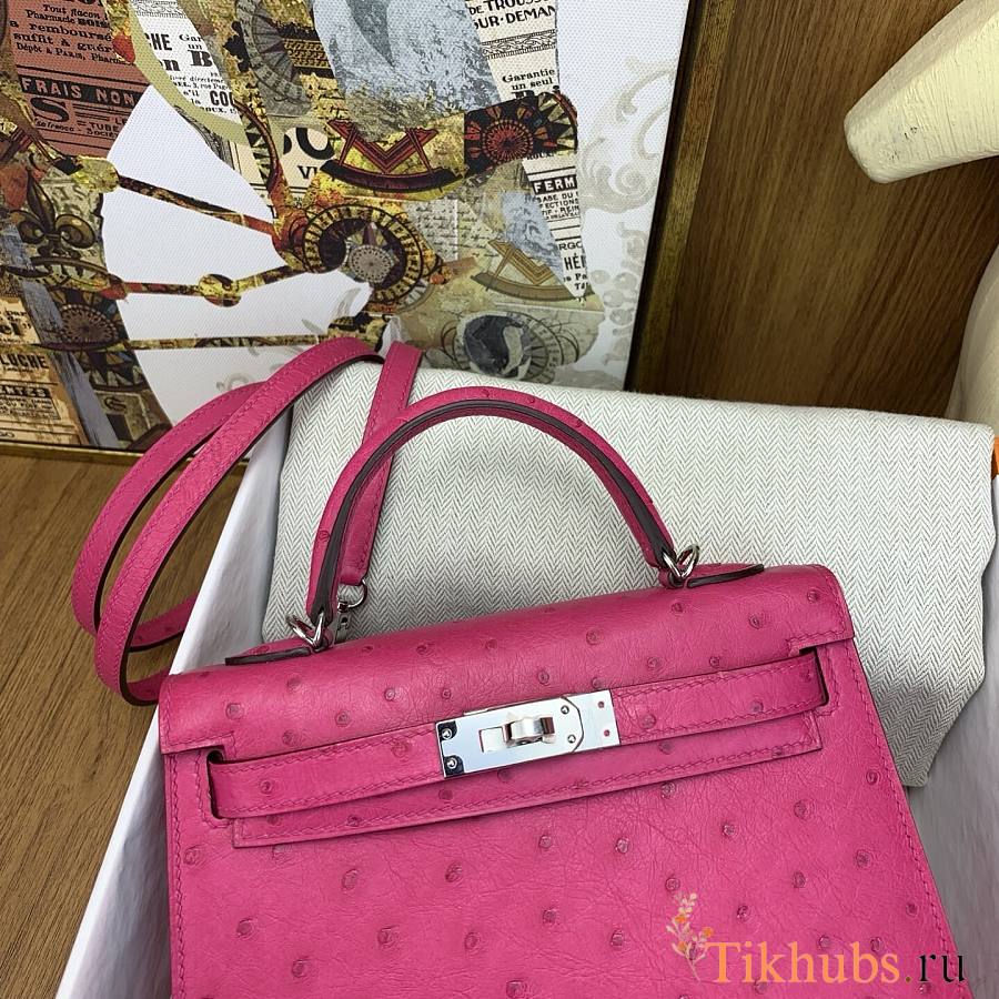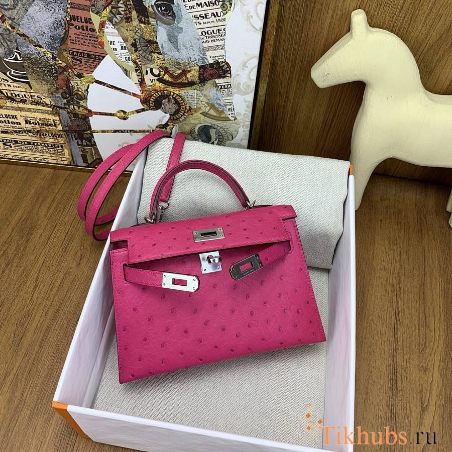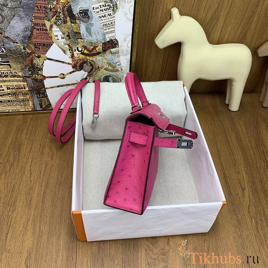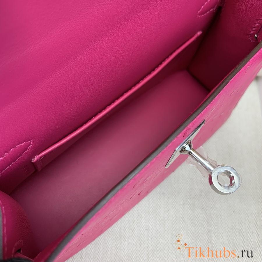 Hermes Mini Kelly Pink Fuchsia Silver Ostrich 19cm