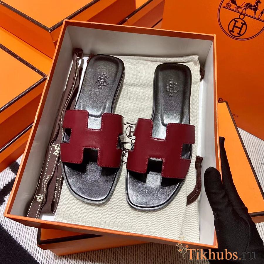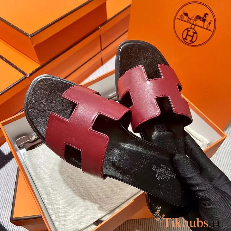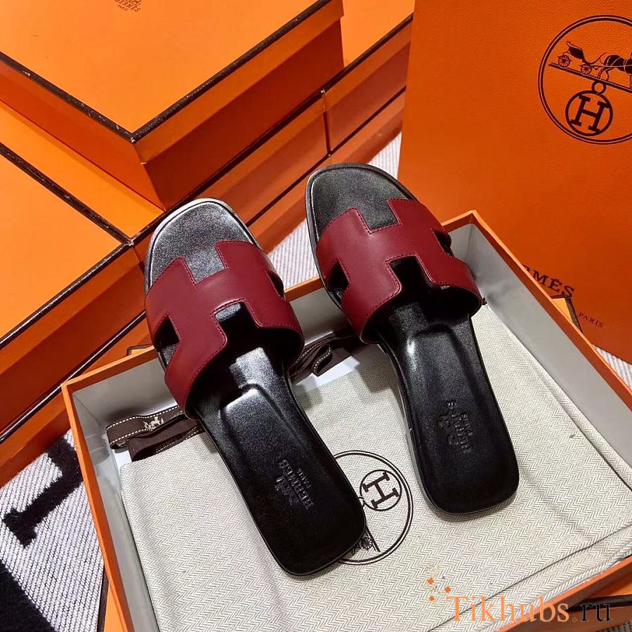 Hermes Oran Black Dark Red Slides