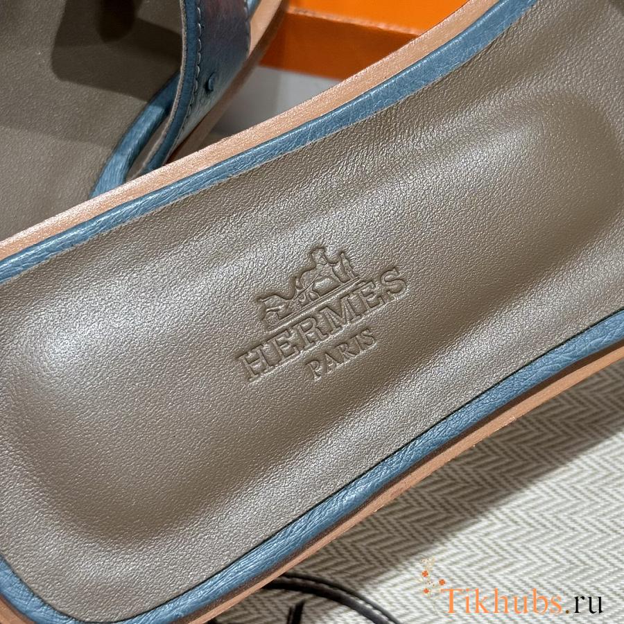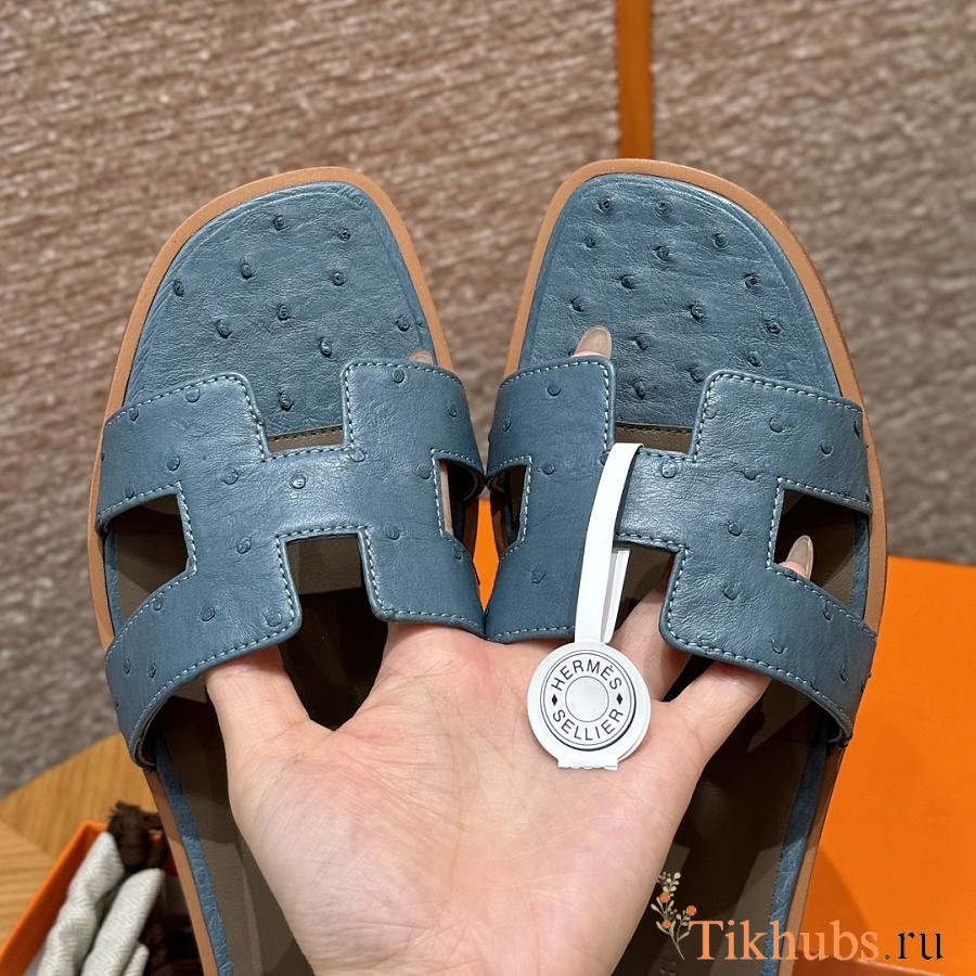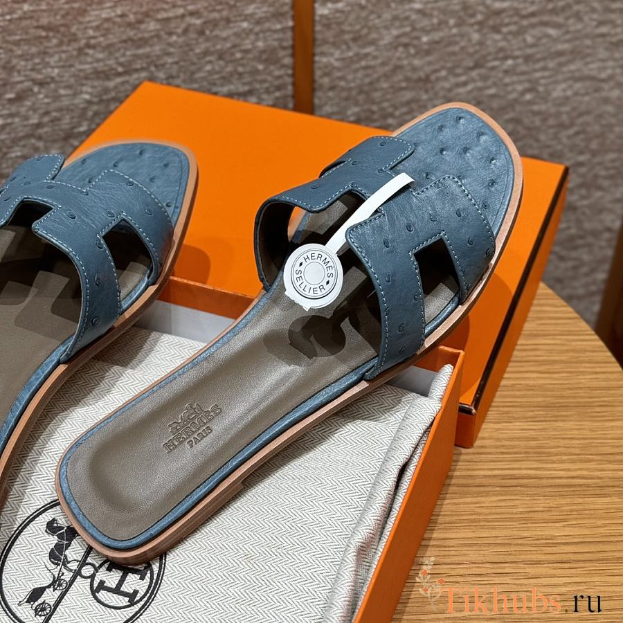 Hermes Oran Blue Ostrich Slides