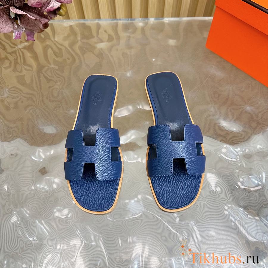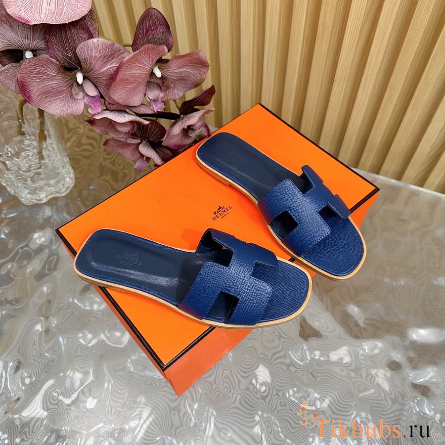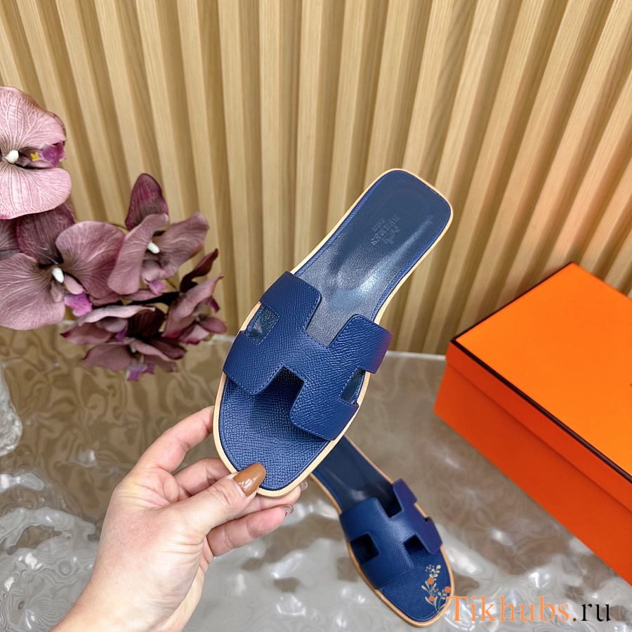 Hermes Oran Slides Navy Blue