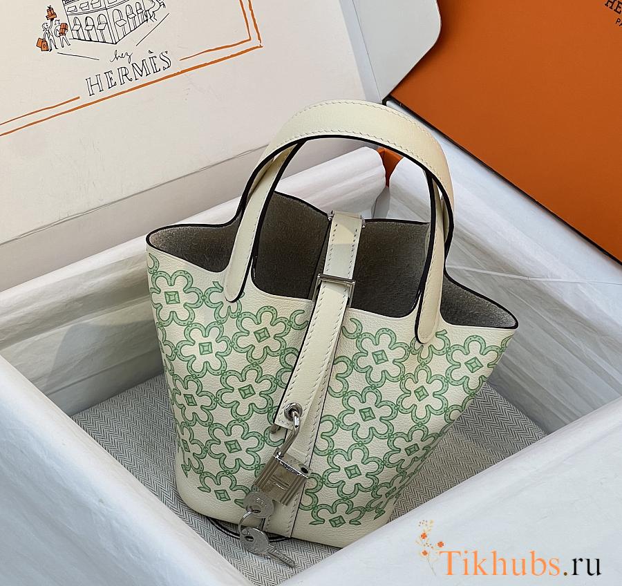 Hermes Picotin Lock 14 Mini Handbag Green Silver 14cm