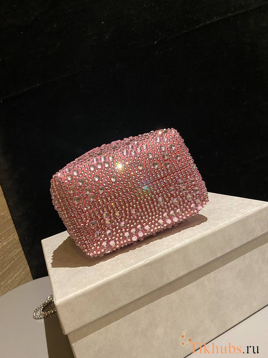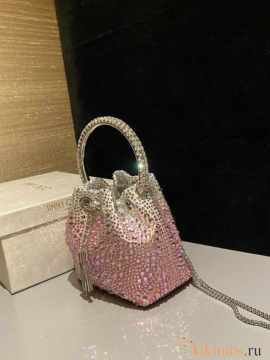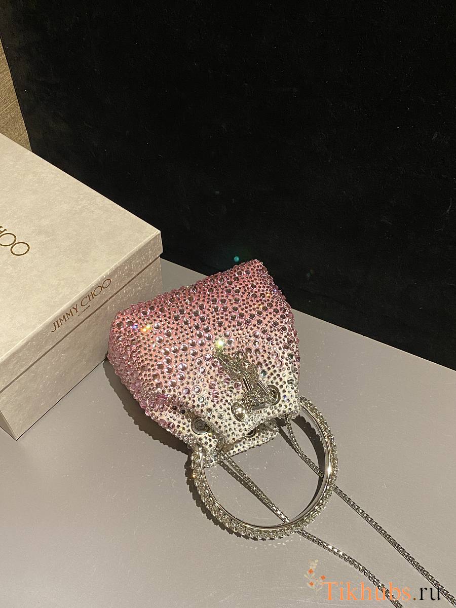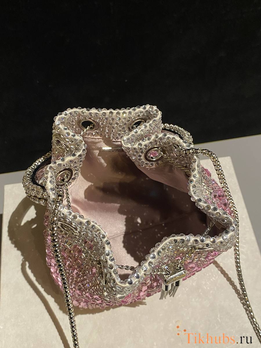 Jimmy Choo Bon Bon Blush Satin Bag Pink Crystals 14x15x9.5cm