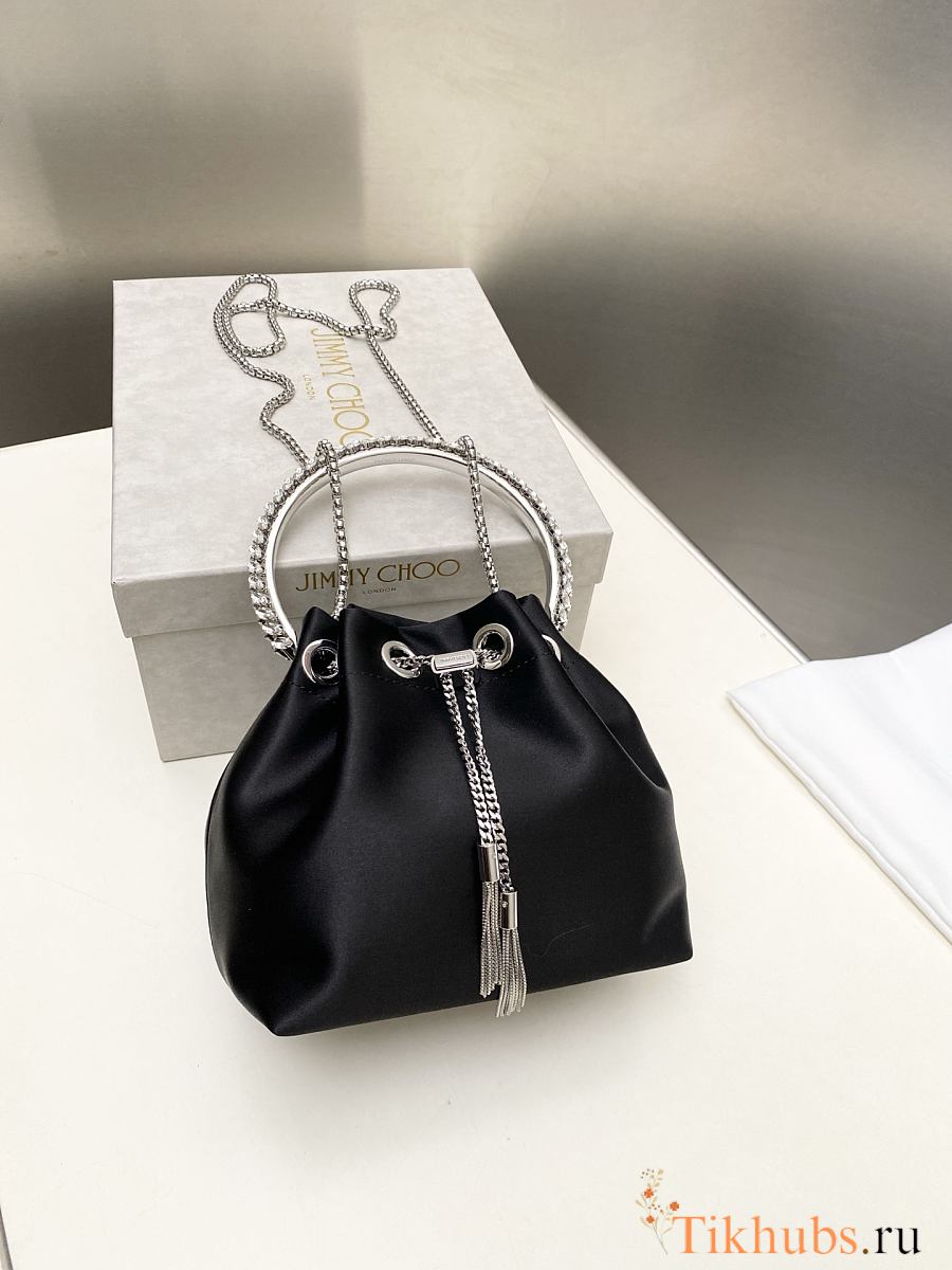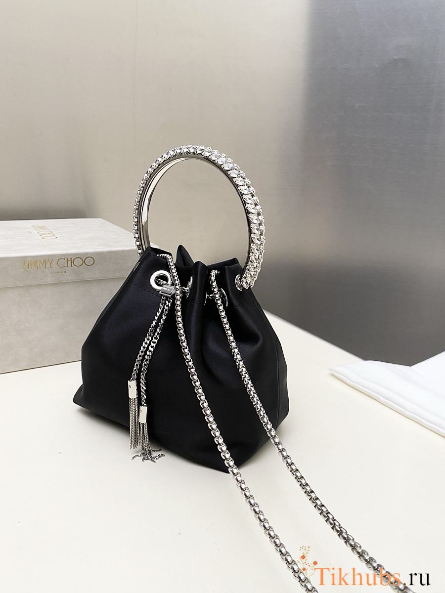 Jimmy Choo Bon Bon Crystal Satin Black Bag 16x15x9.5cm