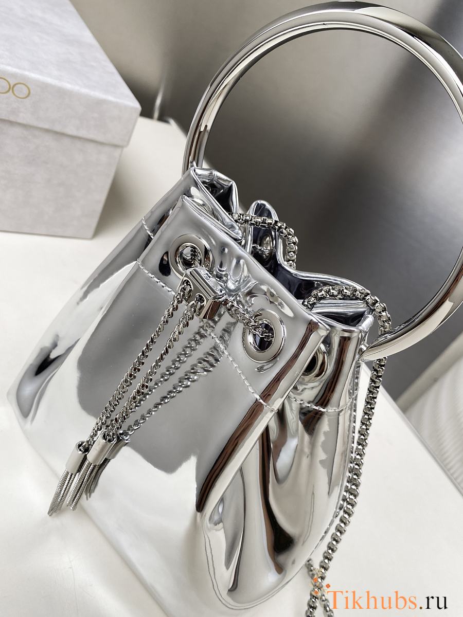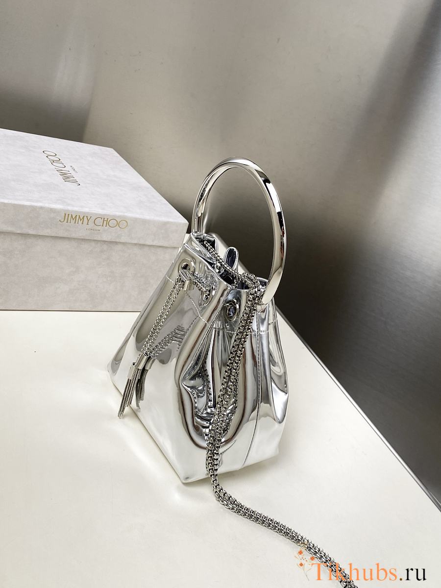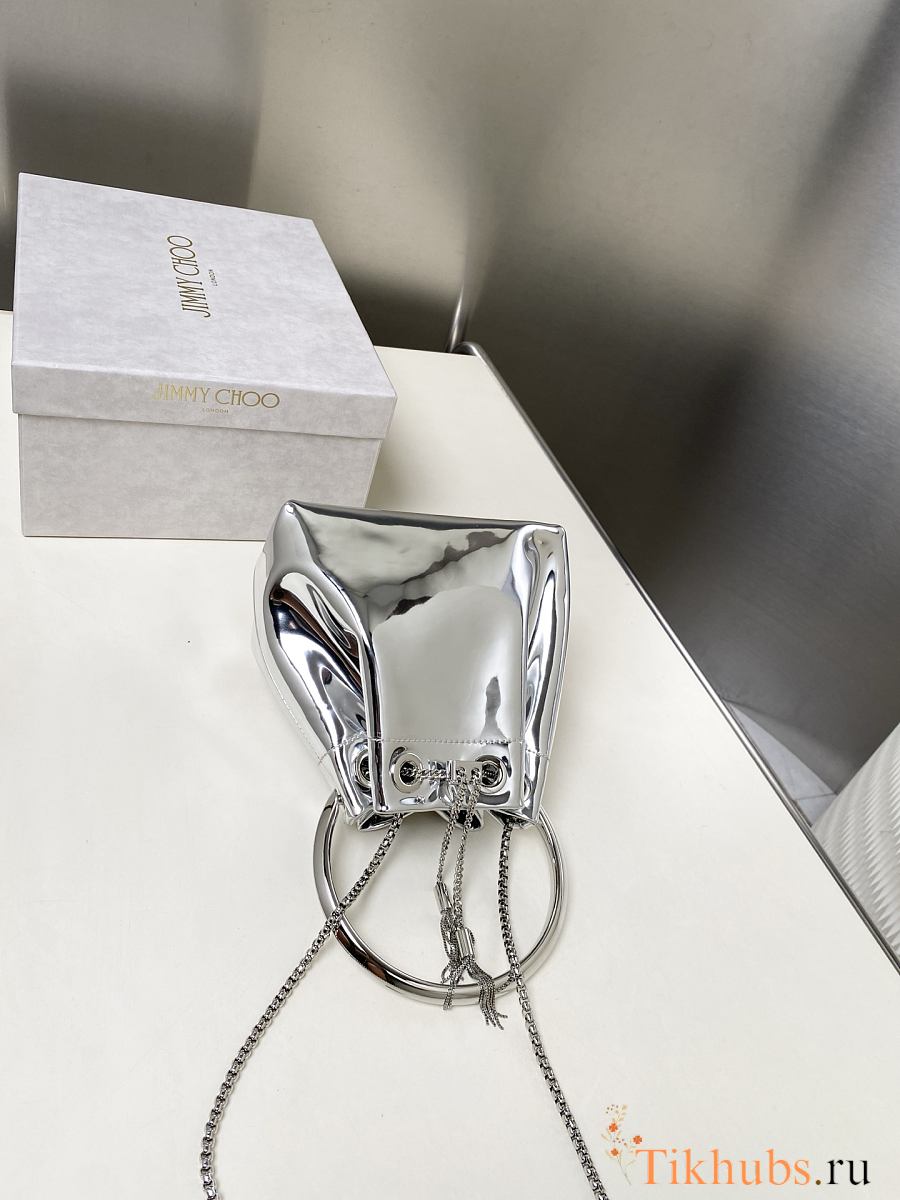 Jimmy Choo Bon Bon Silver Mirror Fabric Mini Bag 14x15x9.5cm