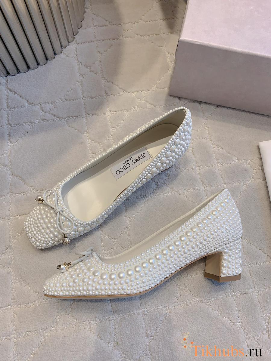Jimmy Choo Elme 45 White Pearl Satin Pumps