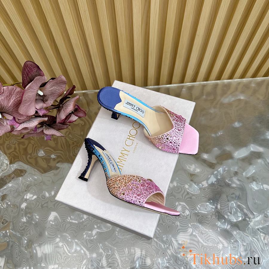 Dior Dway Heeled Slide White Gold-Tone Gradient Butterflies 3.5cm