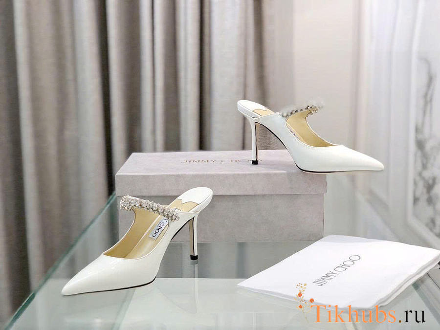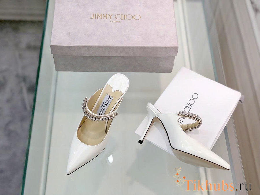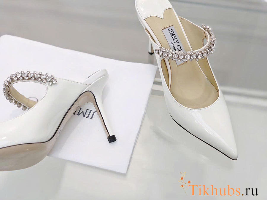 Jimmy Choo White Patent Leather Crystal Strap 10cm