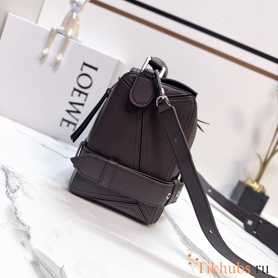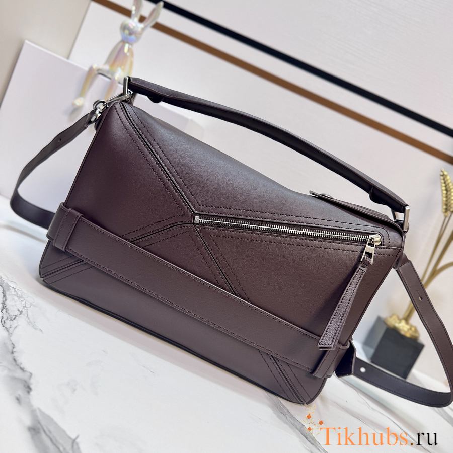 Loewe Large Puzzle Biker Bag Shiny Calfskin Dark Brown 33x21.5x14.7cm