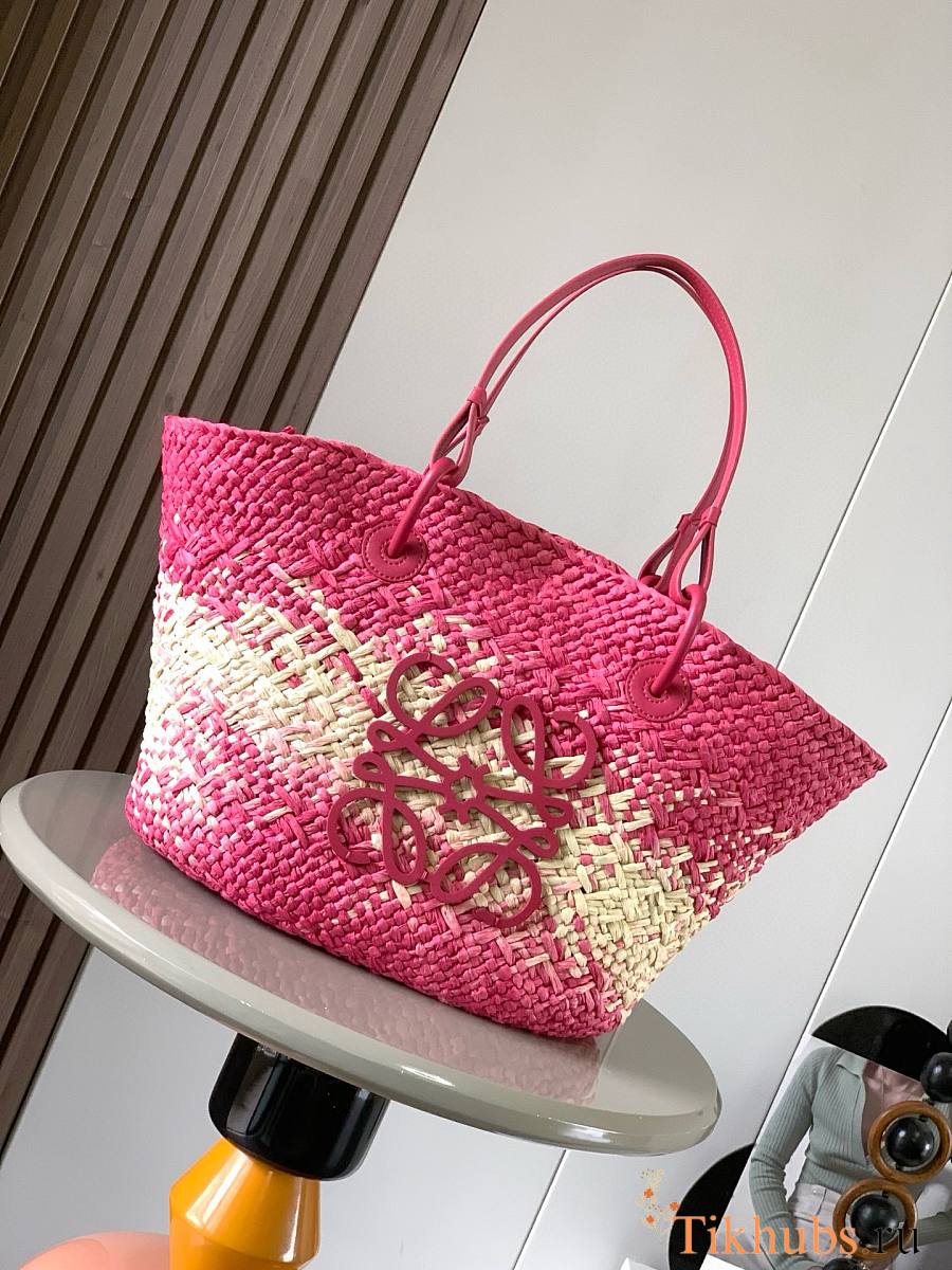 Loewe Medium Anagram Basket Bag Iraca Pink 46x24x15cm