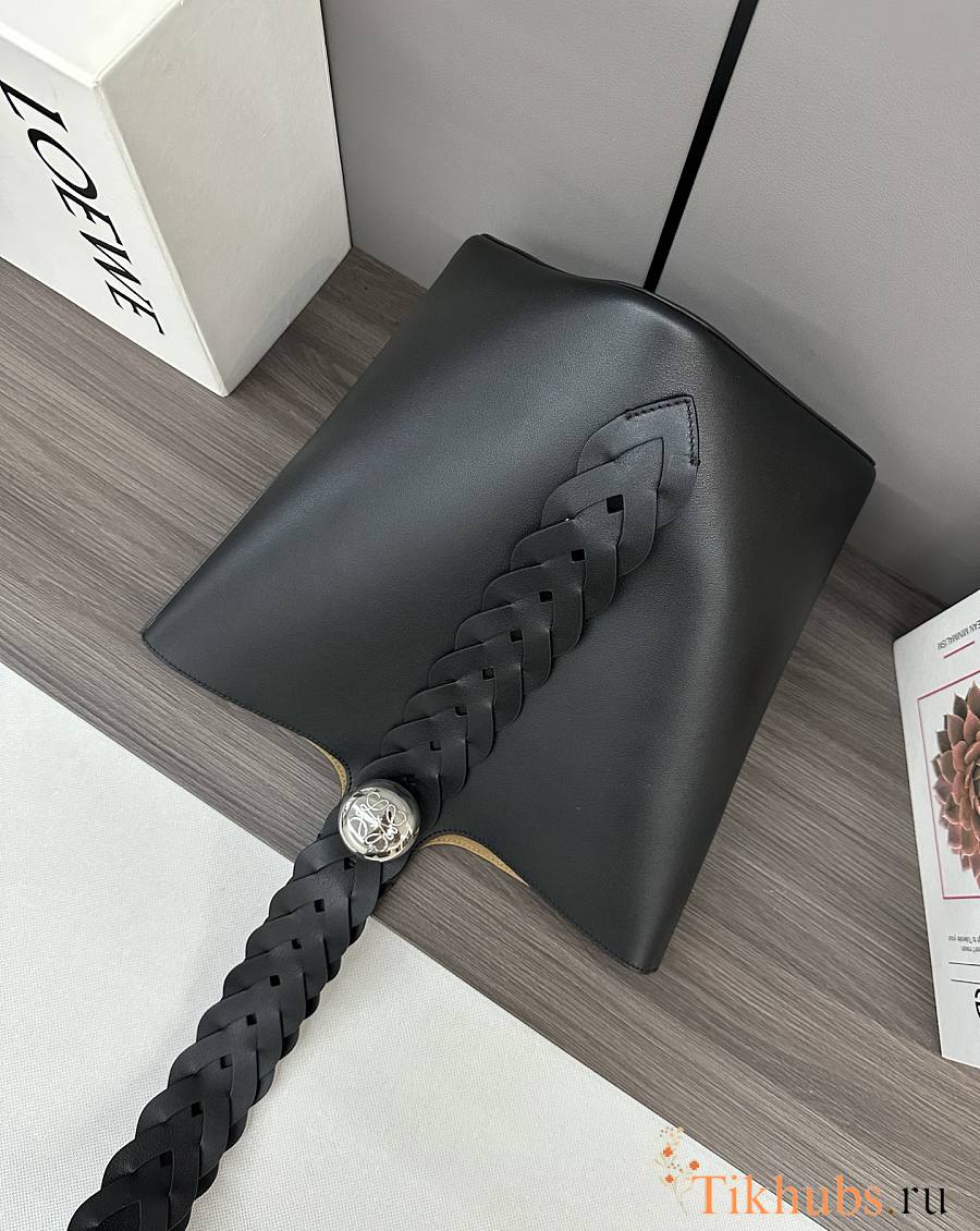 Loewe Pebble Black Braided Leather Bucket 28x24.5x23.5cm