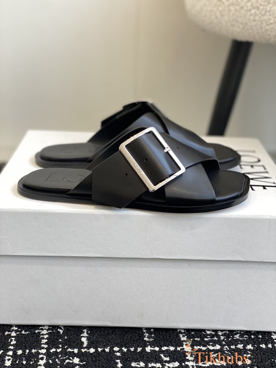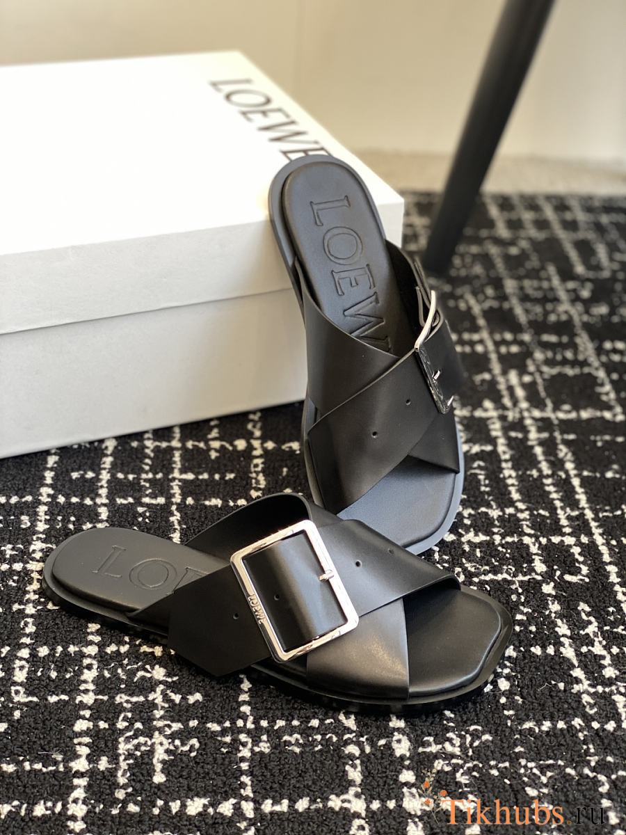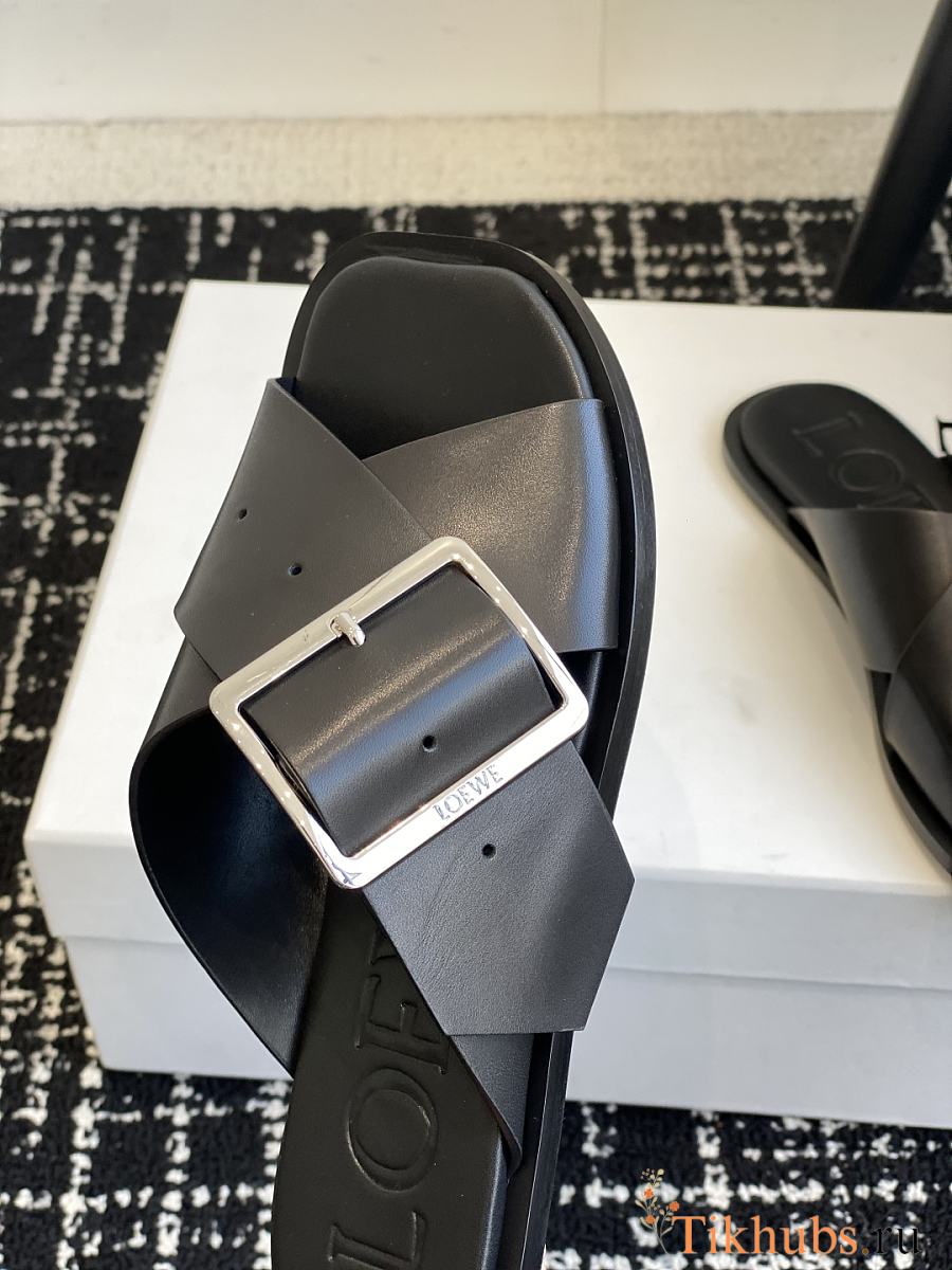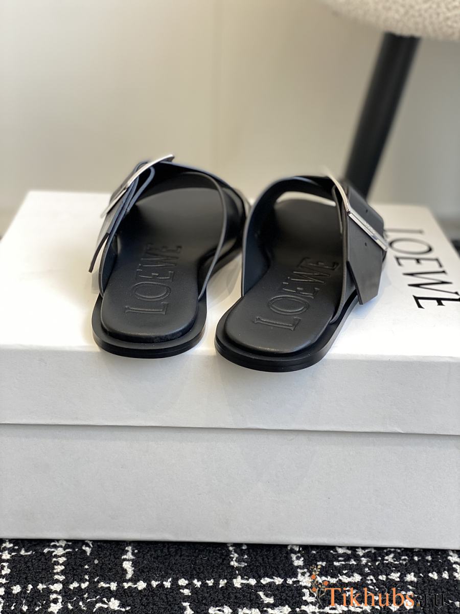 Loewe Petal Belt Flat Sandal Black Vegetable-tanned