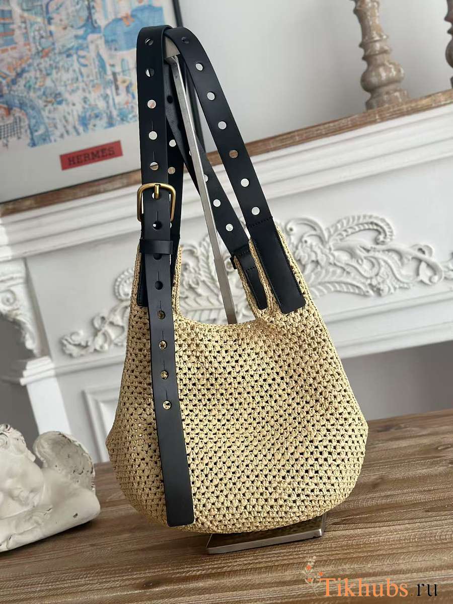 Loewe Small Punch Hole Hobo Bag Raffia 43x40x40cm