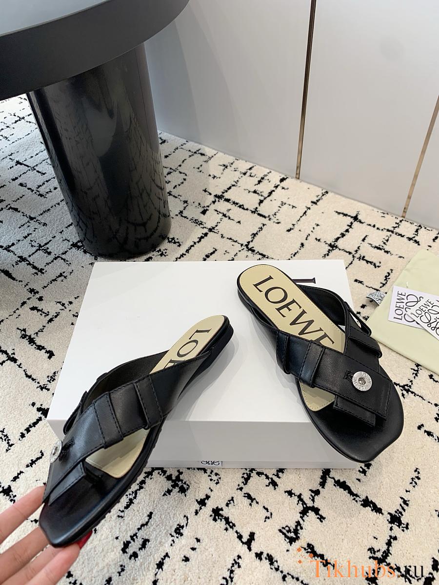 Loewe Toy Panta Toe Post Sandal Lambskin Black