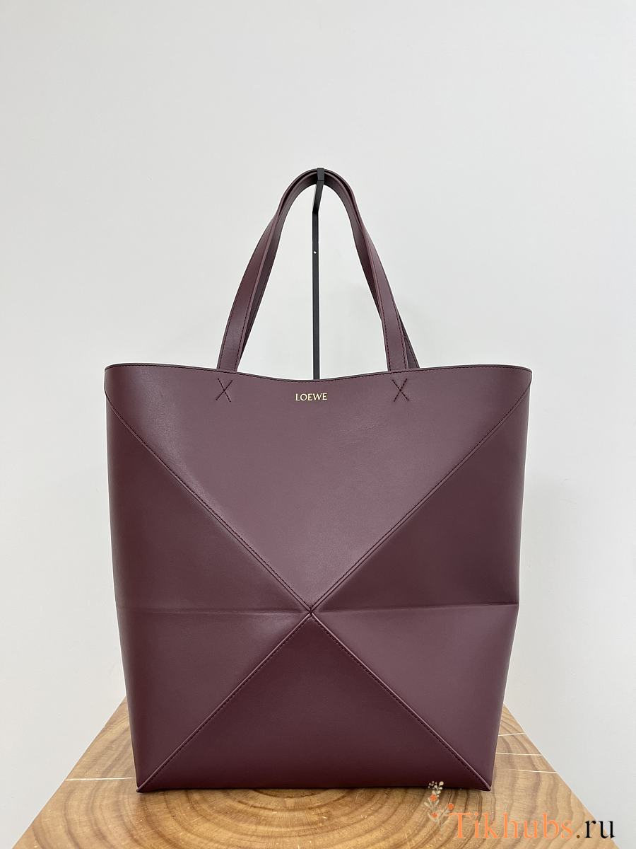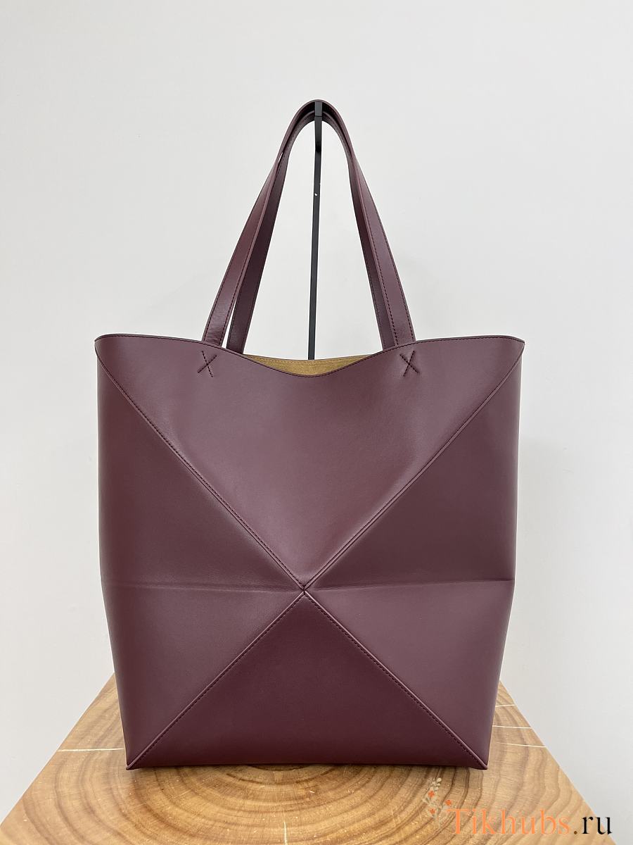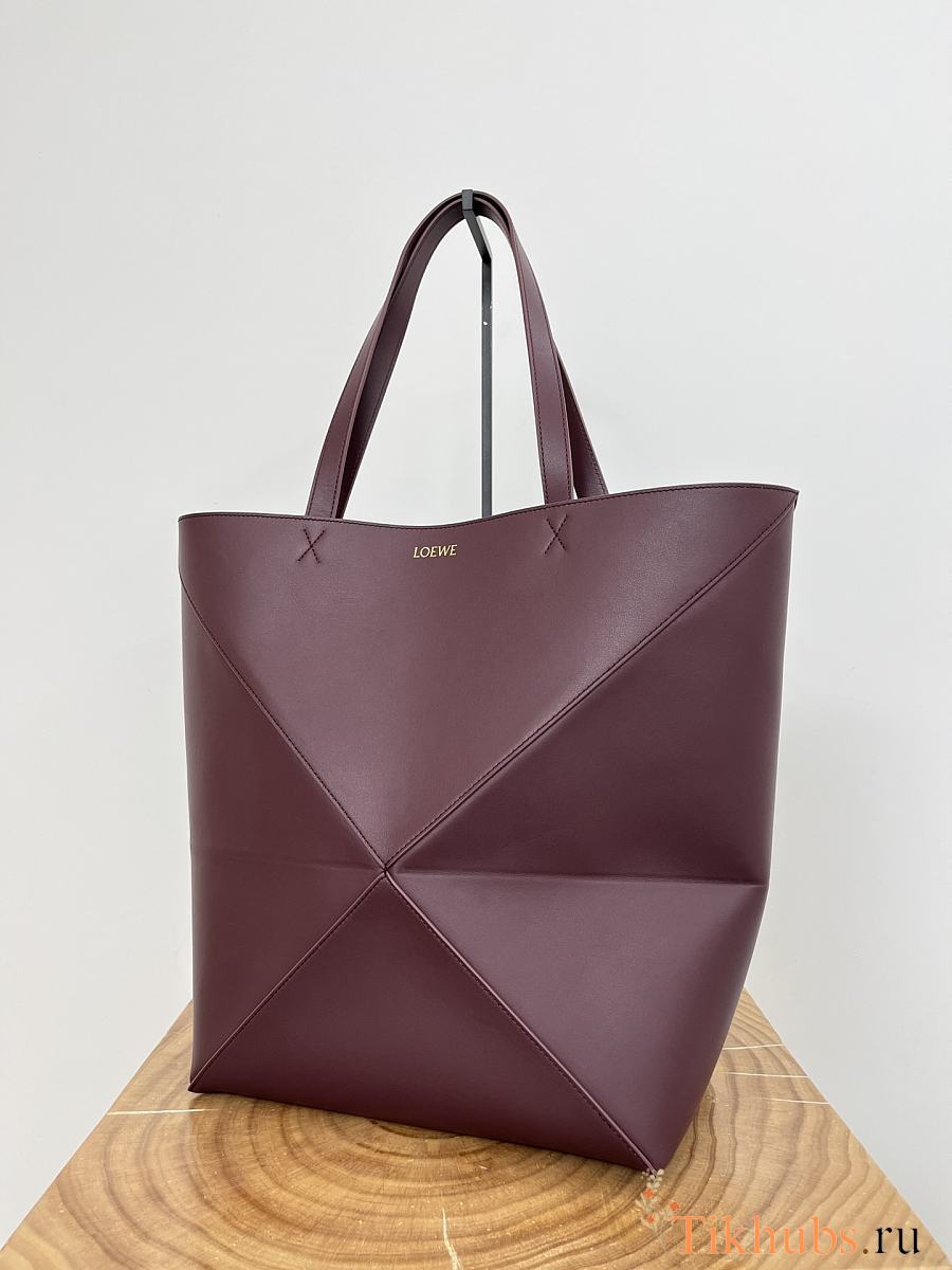 Loewe XL Puzzle Fold Tote Shiny Calfskin Red Wine 42x41x18cm