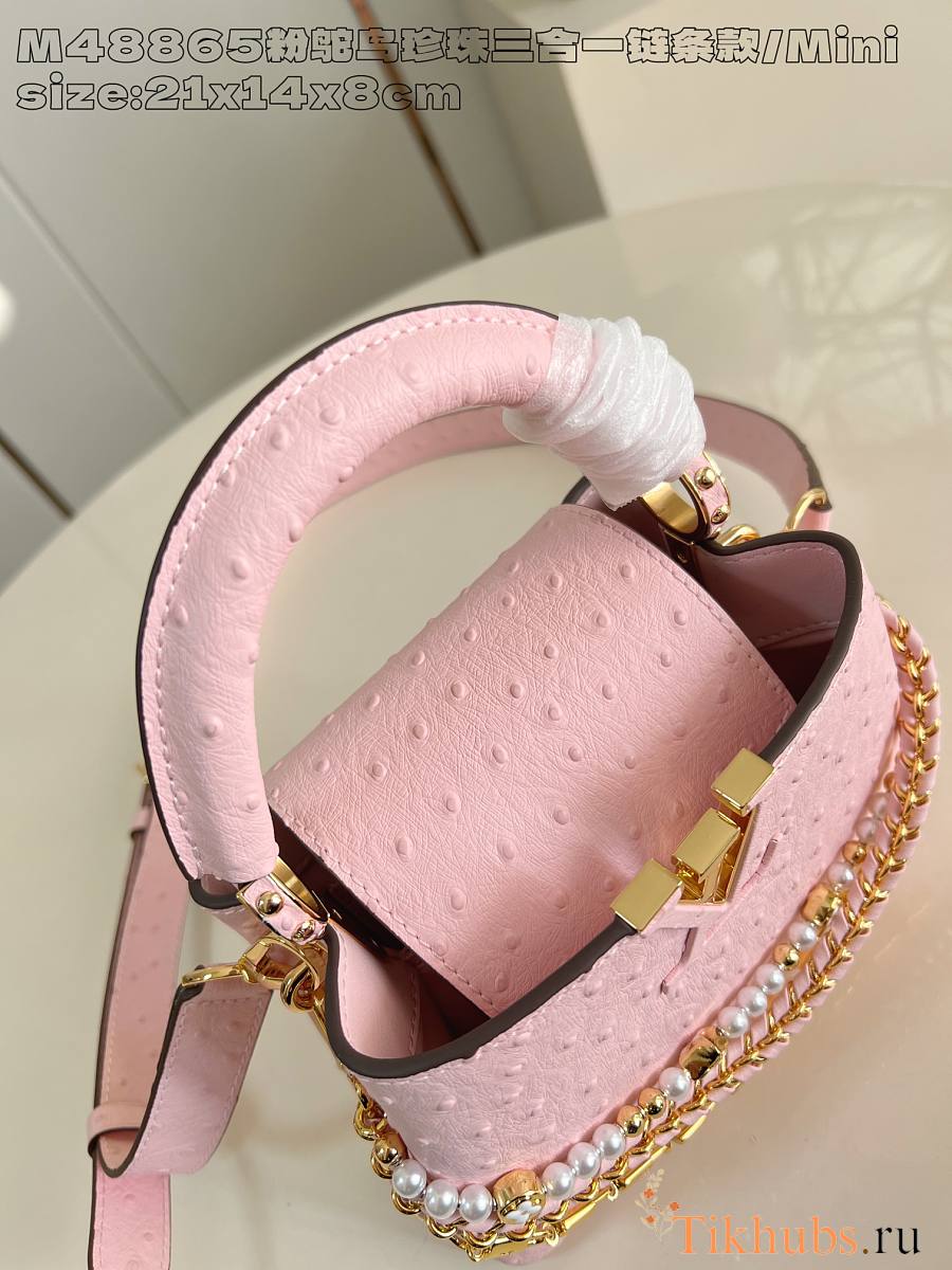 Louis Vuitton LV Mini Capucines Bag Pink Ostrich 21cm