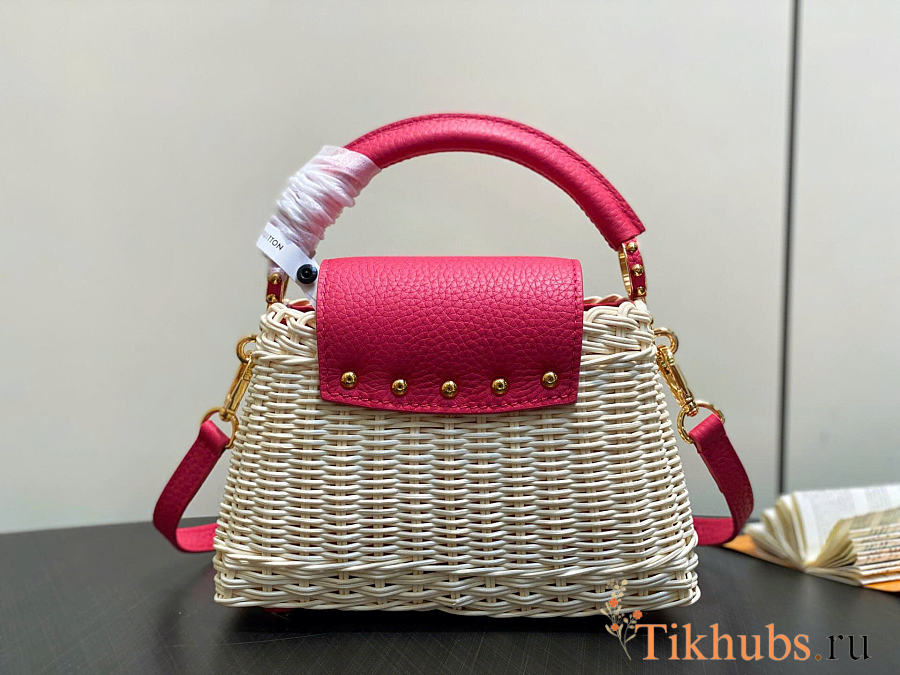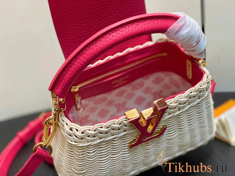 Louis Vuitton LV Mini Capucines Raffia Pink 21x8x14cm
