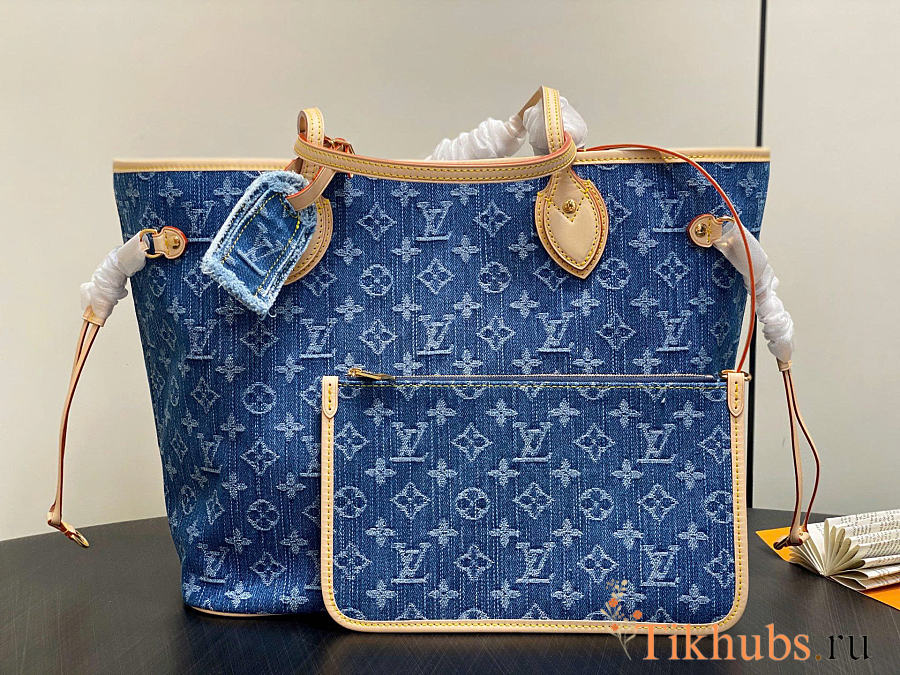 Louis Vuitton LV Neverfull MM Denim Blue 31x28x14cm