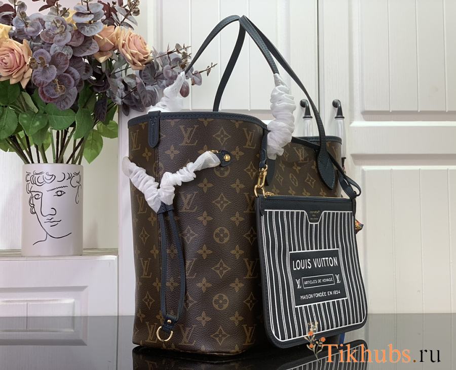 Louis Vuitton LV Neverfull MM Navy Blue Monogram 32x27x14cm