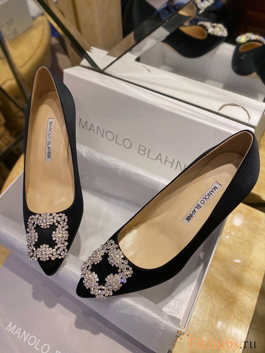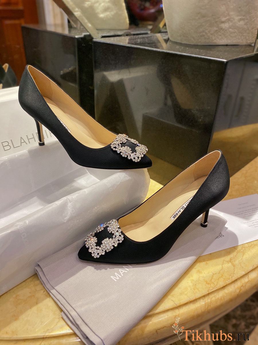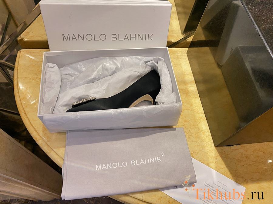 Manolo Blahnik Hangisi 10mm Black Satin Pumps