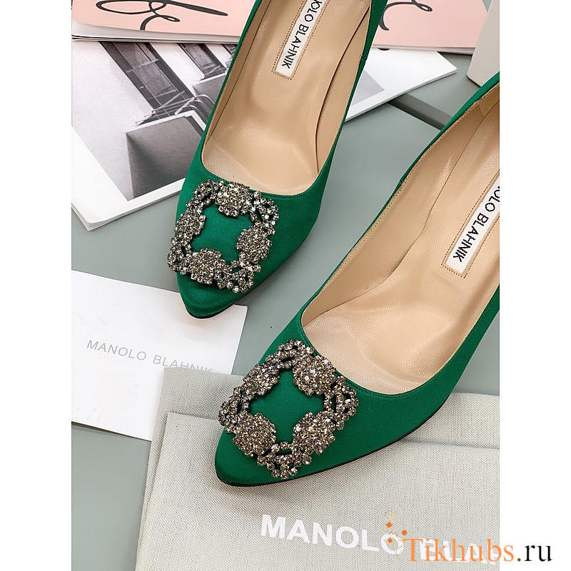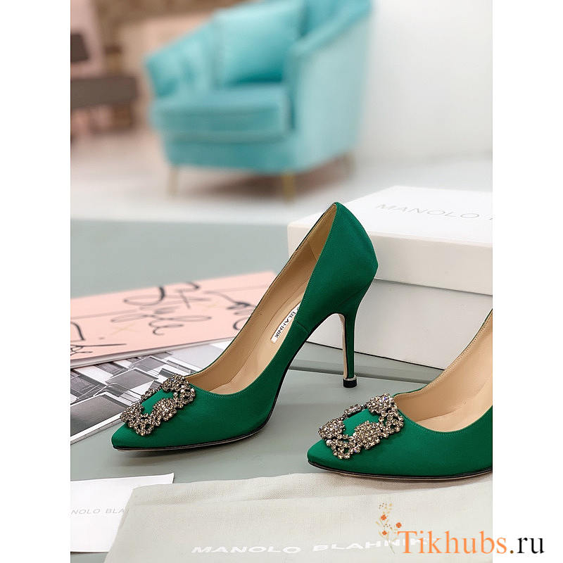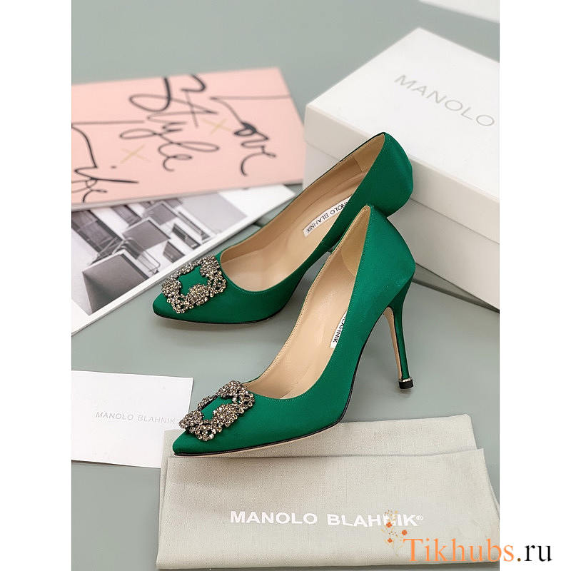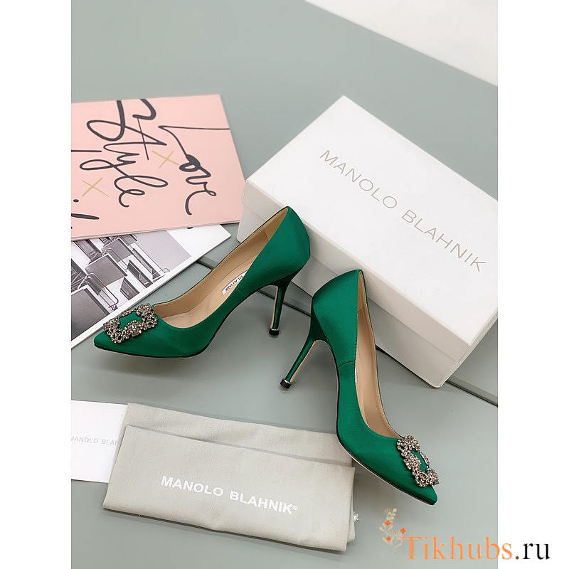 Manolo Blahnik Hangisi 90mm Satin Pumps Green