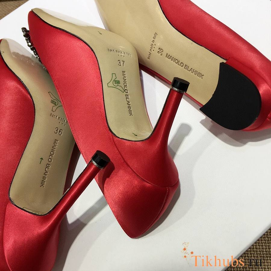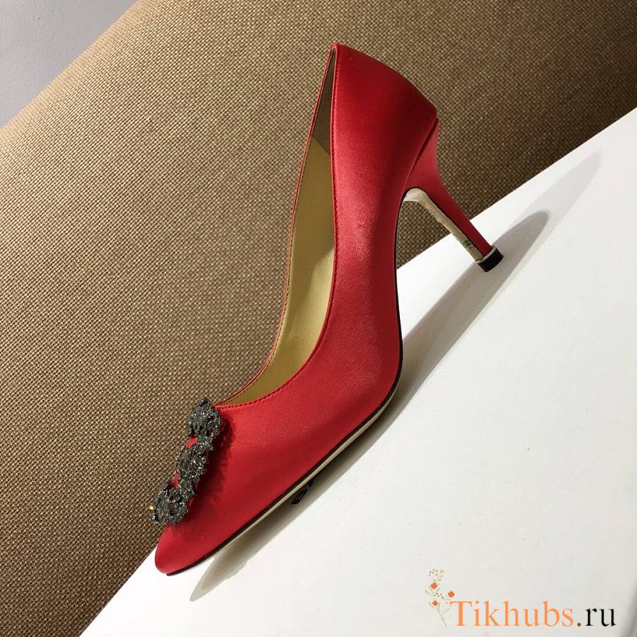 Manolo Blahnik Hangisi Red Satin Pumps 1.5cm, 6.5cm, 9.5cm