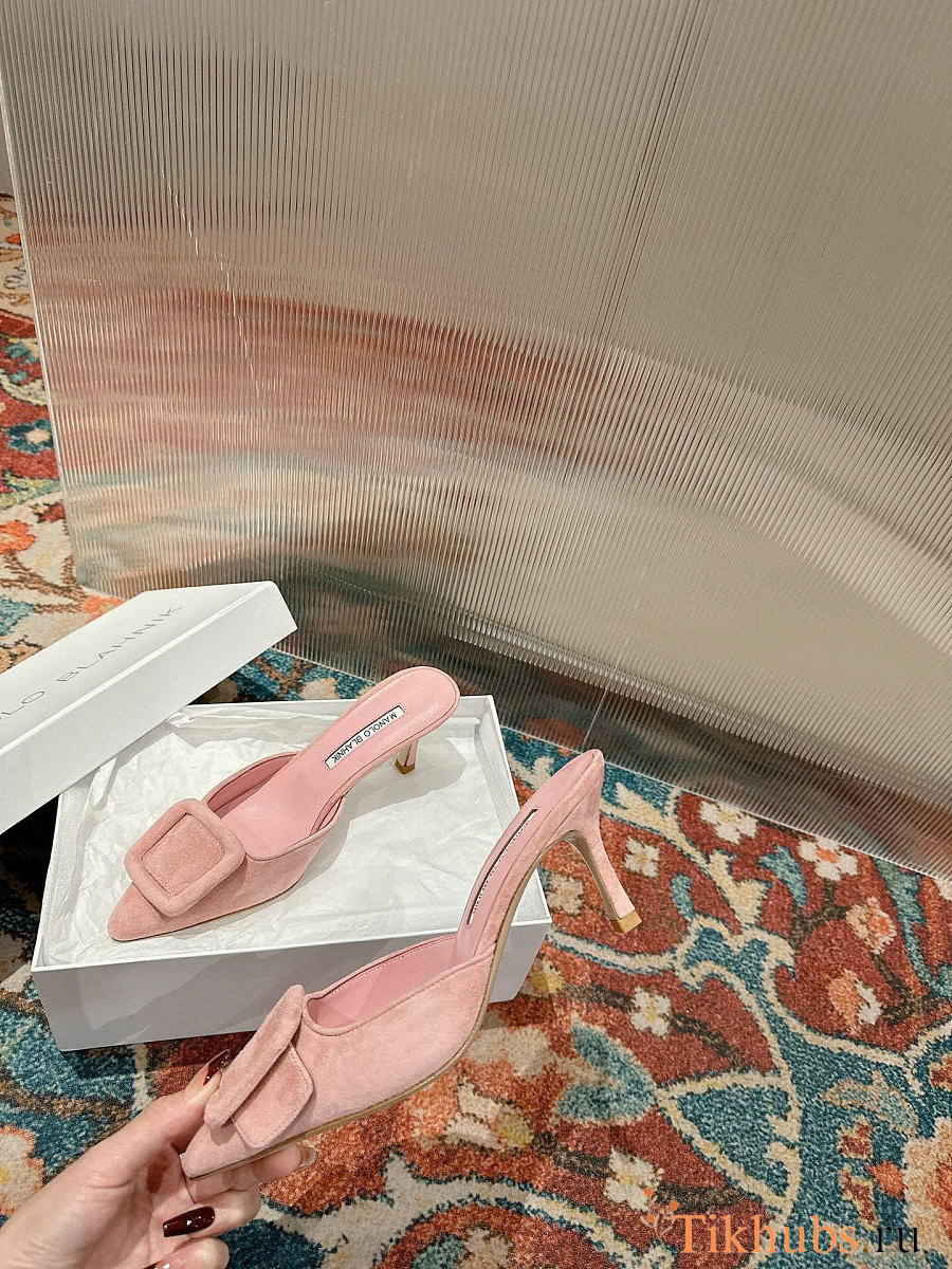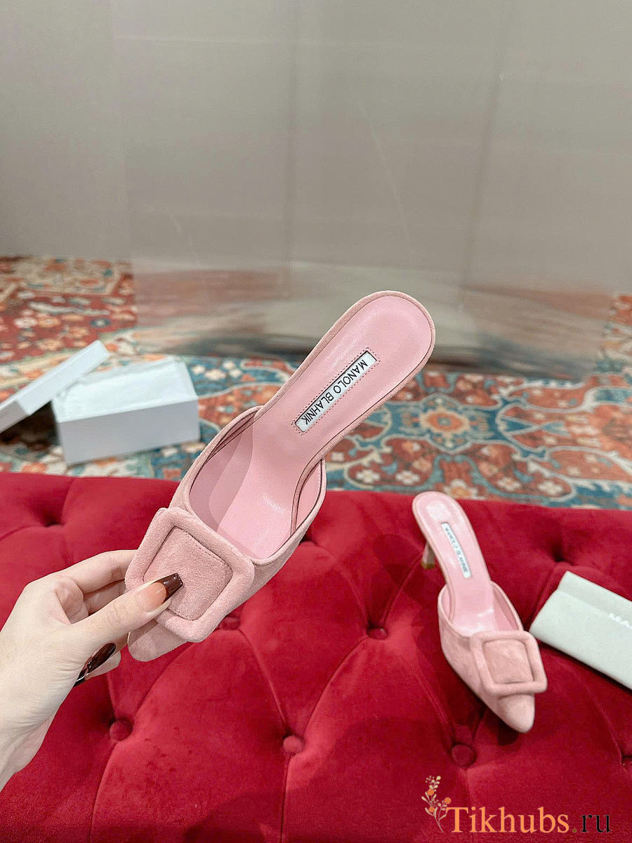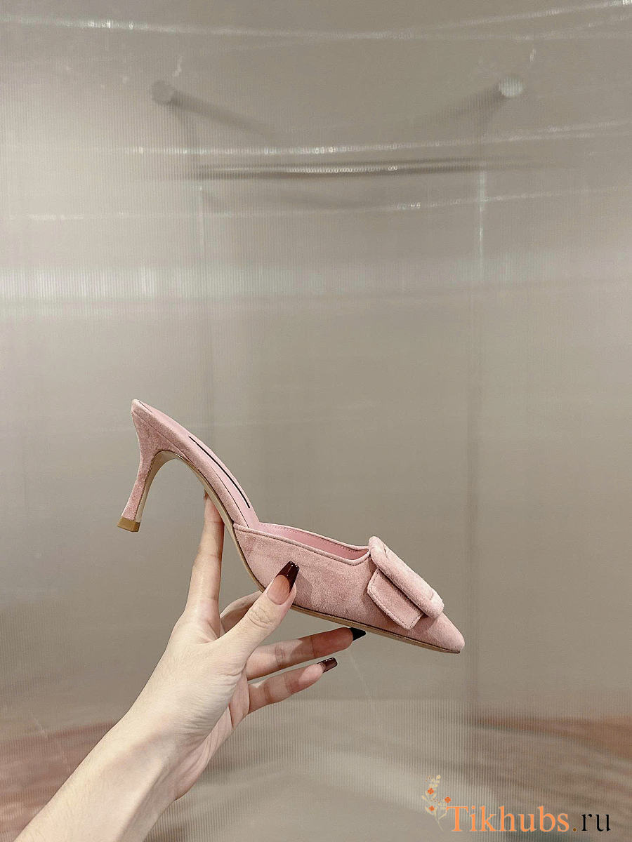 Manolo Blahnik Maysli Pink Suede Slingback Pumps 7cm
