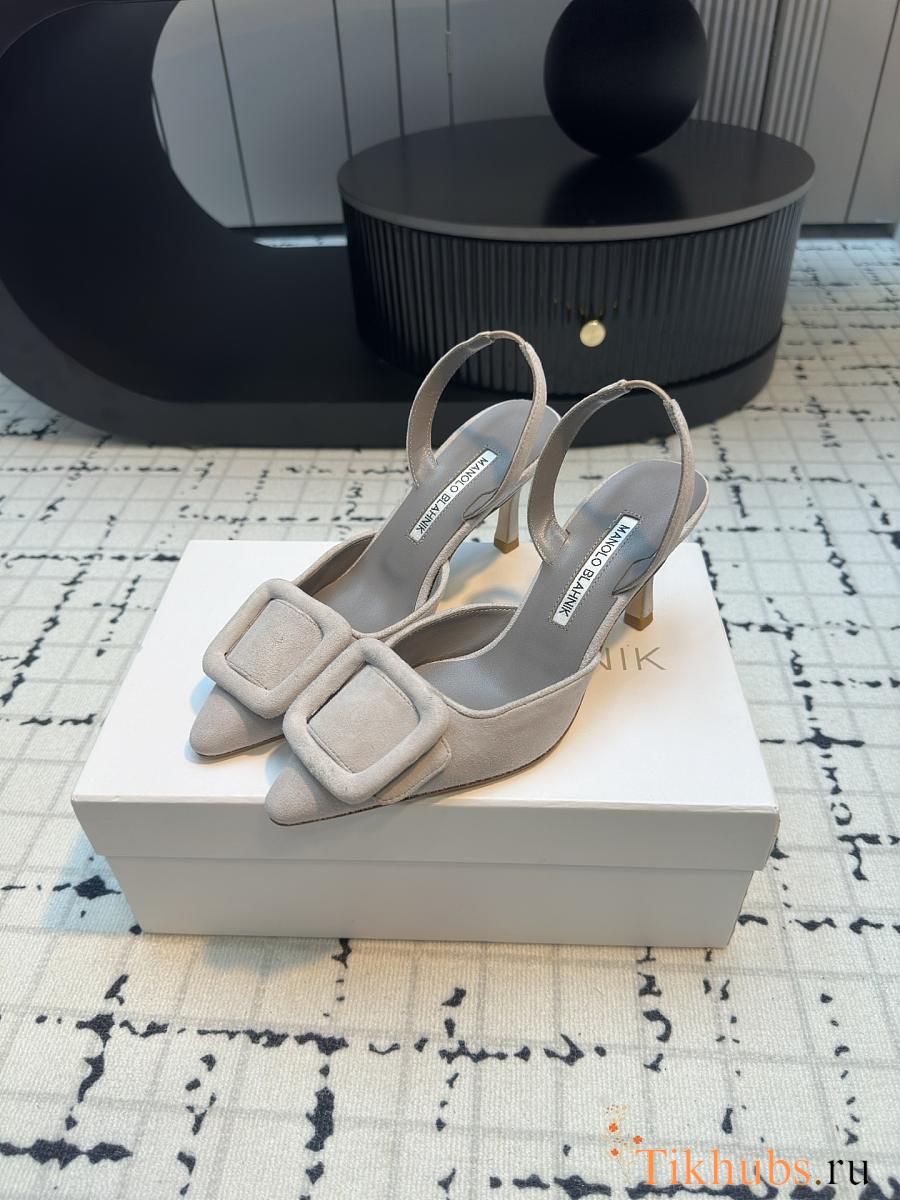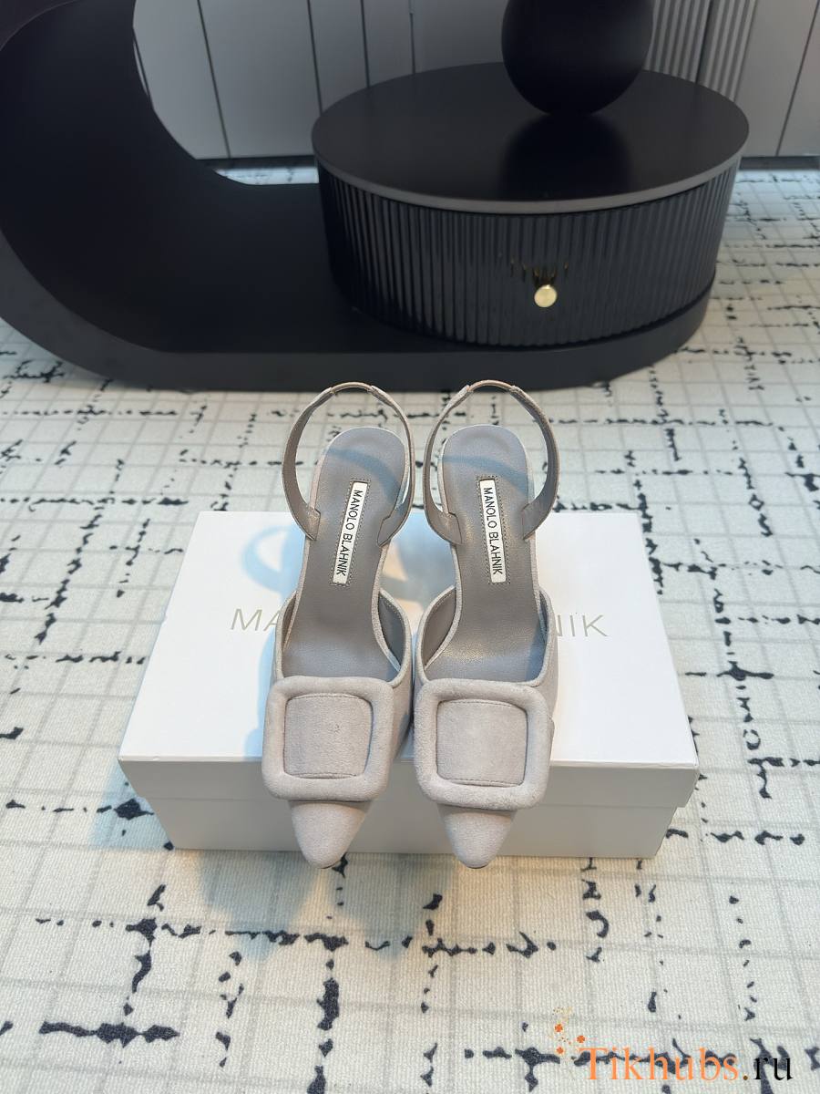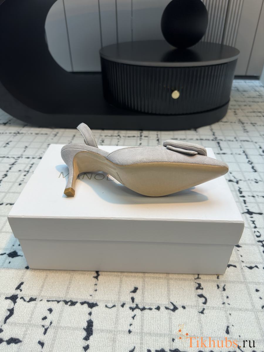 Manolo Blahnik Val 70 Suede Slingback Pumps Grey