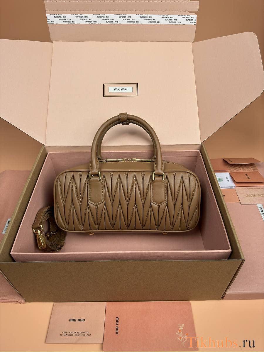 Miu Miu Arcadie Nappa Leather Tote Bag Caramel 27x12x9cm