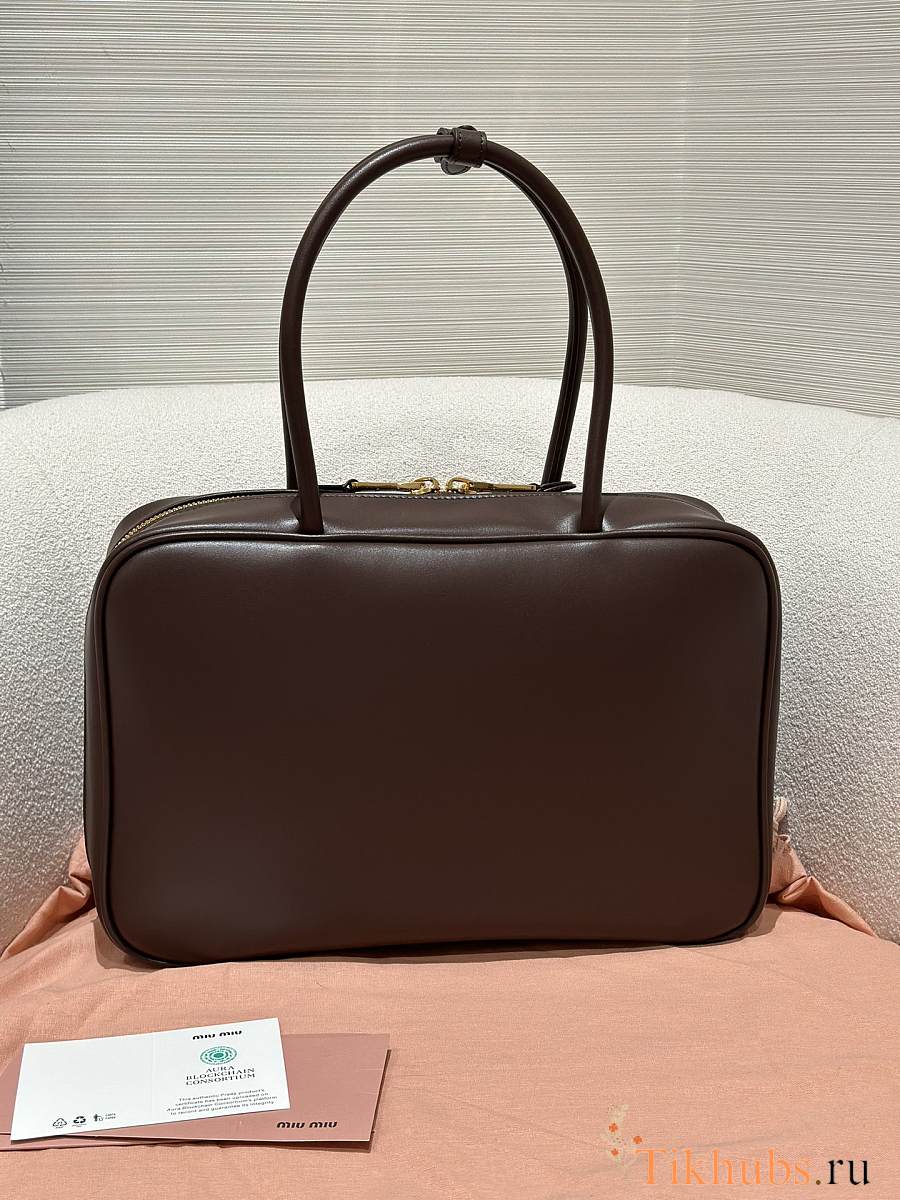 Miu Miu Beau Bag Dark Brown Leather 35x12x22cm
