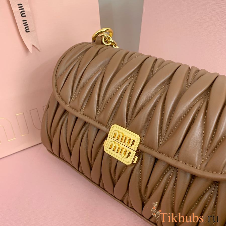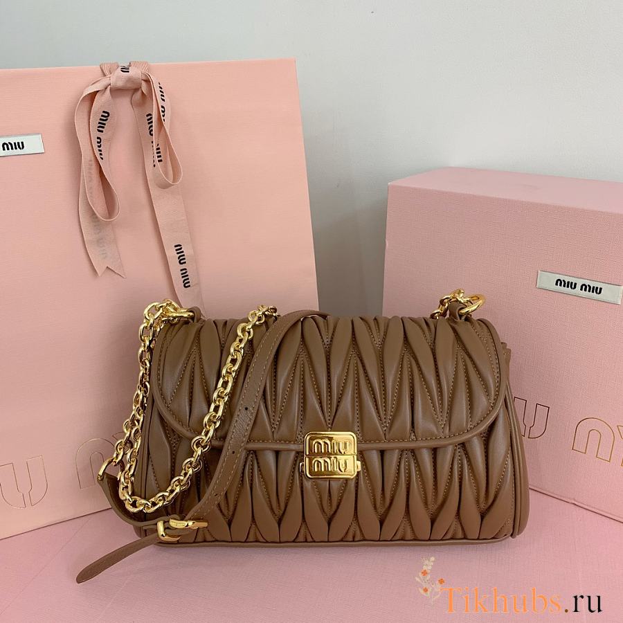 Miu Miu Matelassé Nappa Cognac Leather Shoulder Bag 24x13.5x9cm
