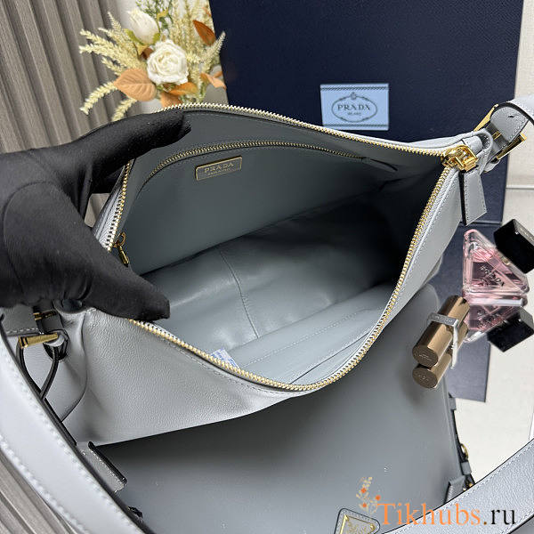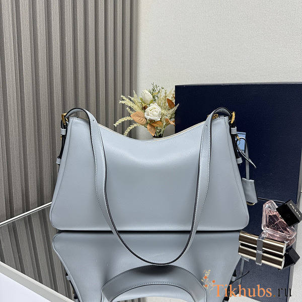 Prada Aimee Large Leather Shoulder Bag Blue 39x23x12cm