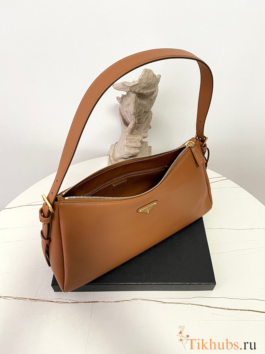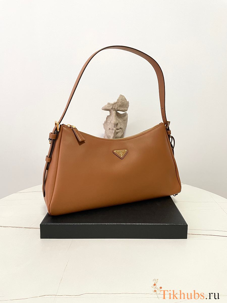 Prada Aimee Large Leather Shoulder Bag Cognac 39x23x12cm