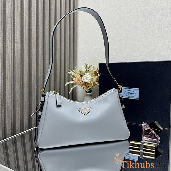 Prada Aimee Medium Leather Shoulder Bag Blue 31x18x10cm