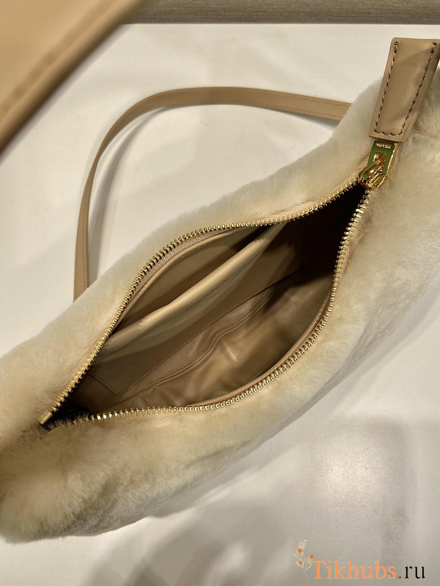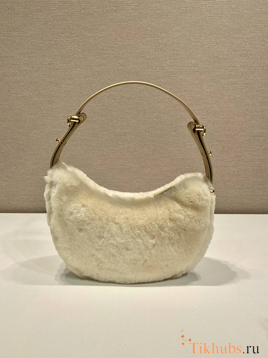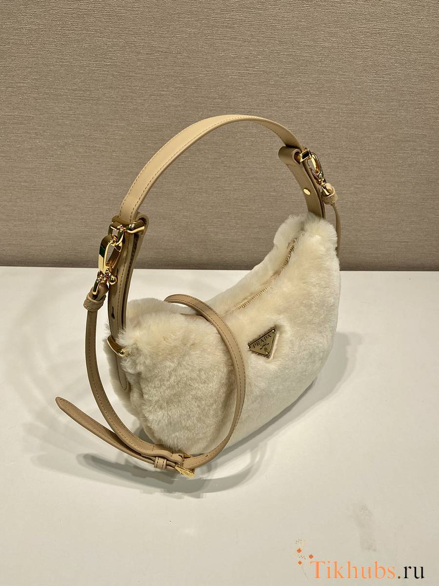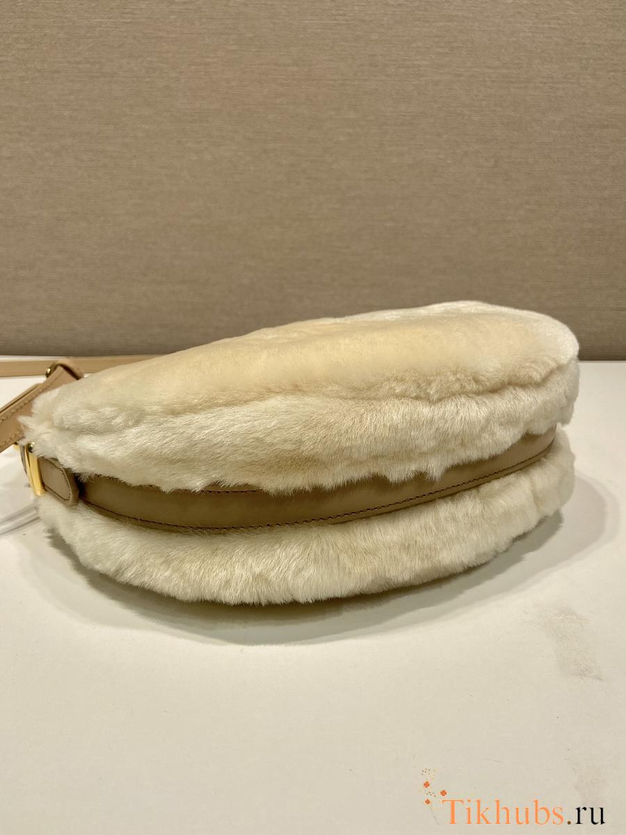 Prada Arqué Shearling Leather Shoulder Bag Beige 22.5x18.5x6cm