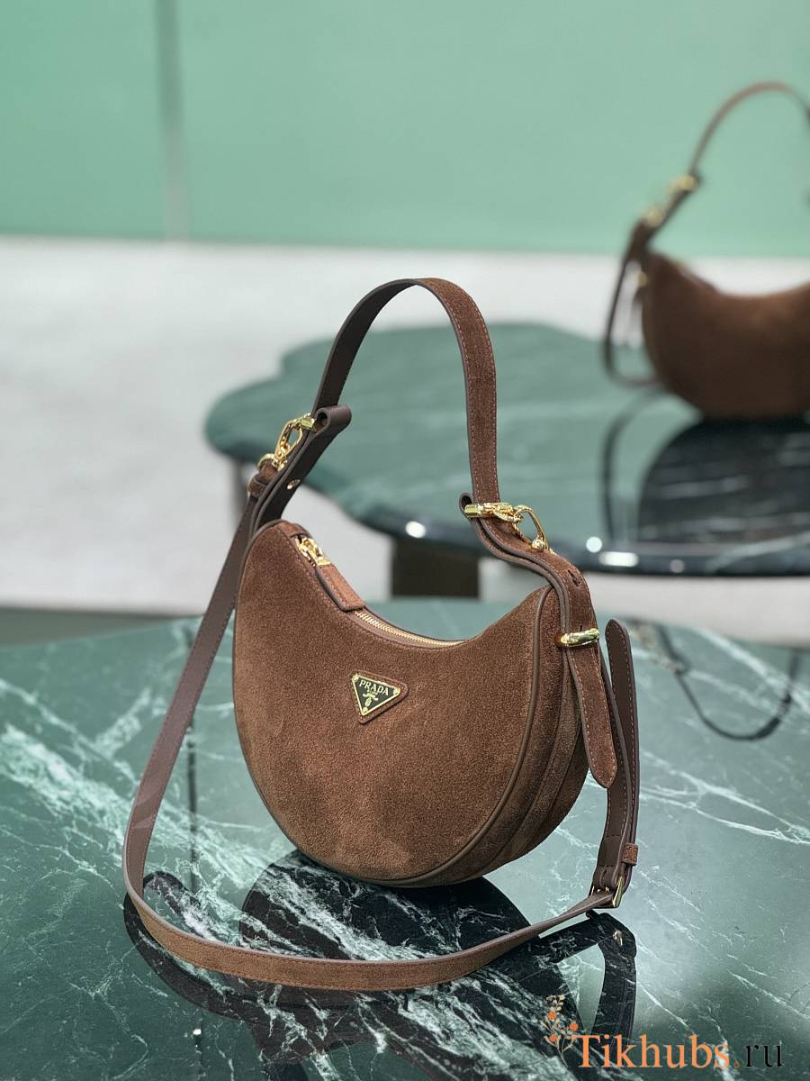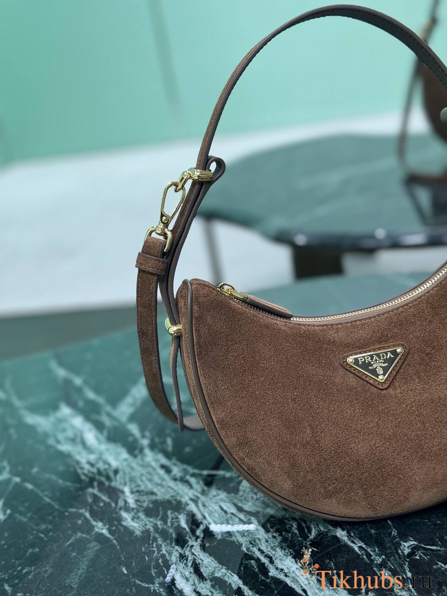 Prada Arqué Suede Shoulder Bag Cocoa Brown 22.5x18x5x6cm