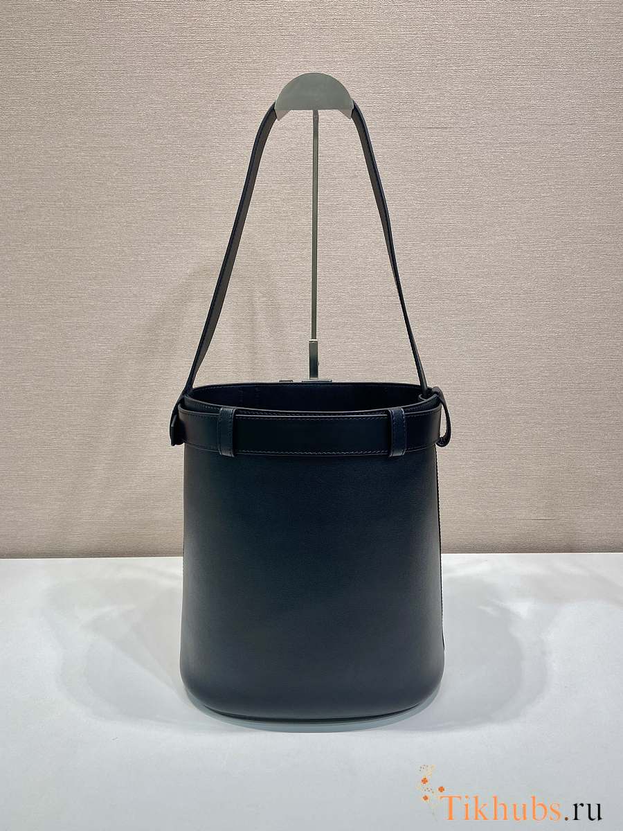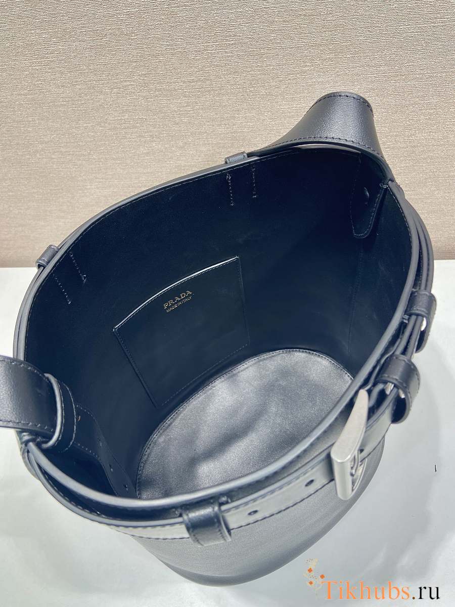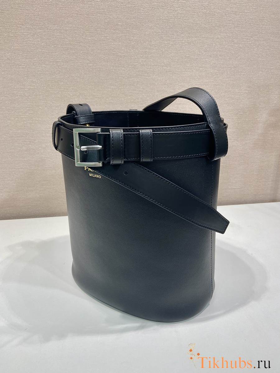 Prada Bucket Bag Belt Buckle Leather Black 26.5x29x18cm