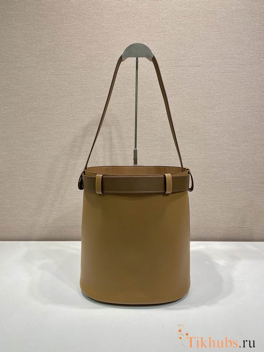 Prada Bucket Bag Belt Buckle Leather Caramel 26.5x29x18cm