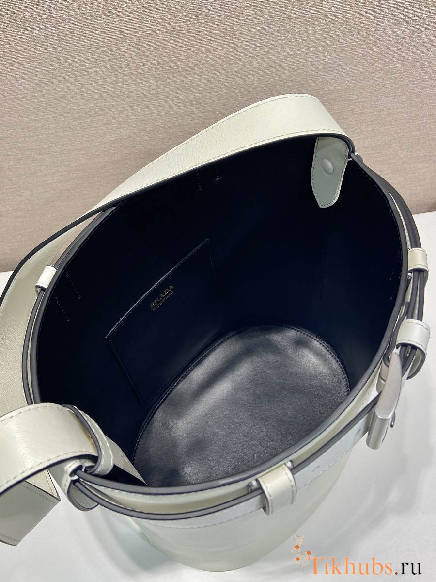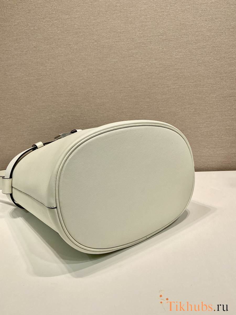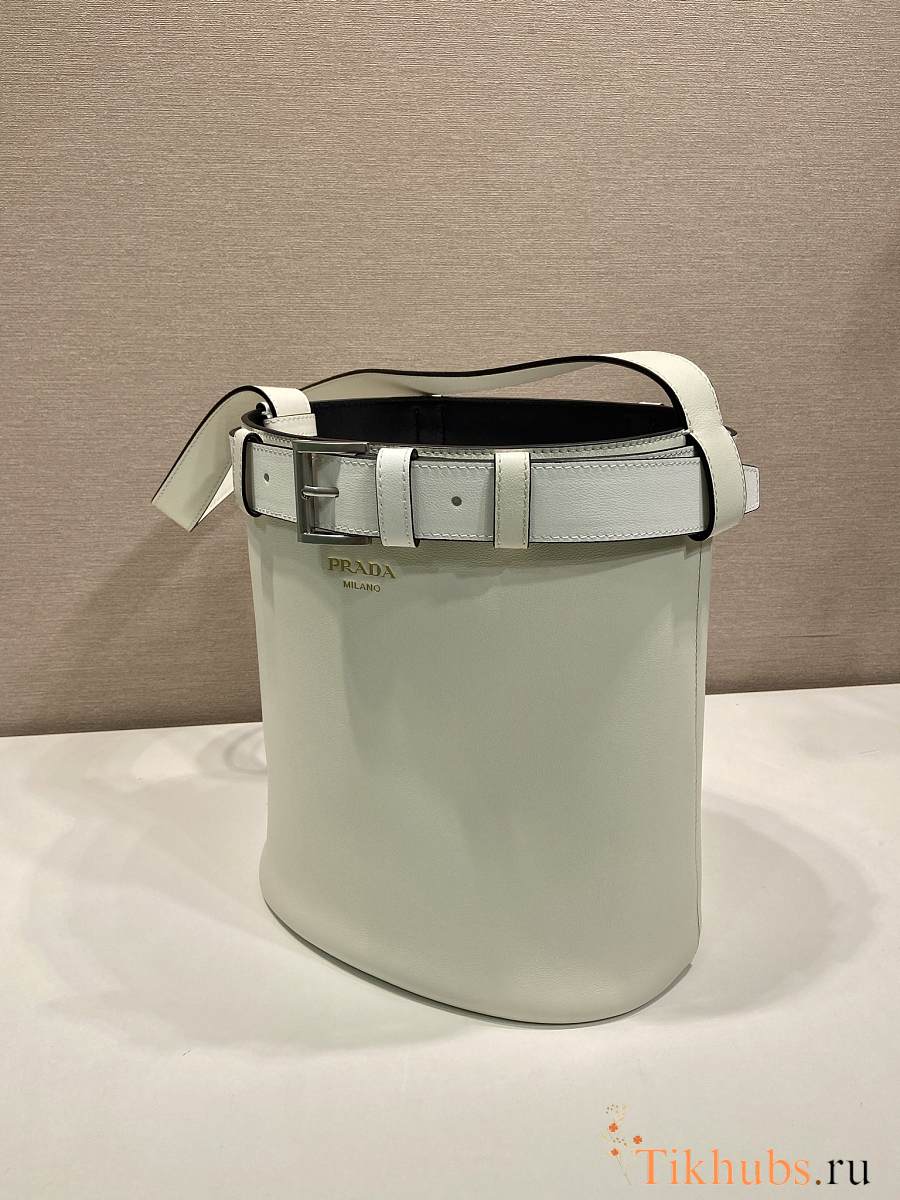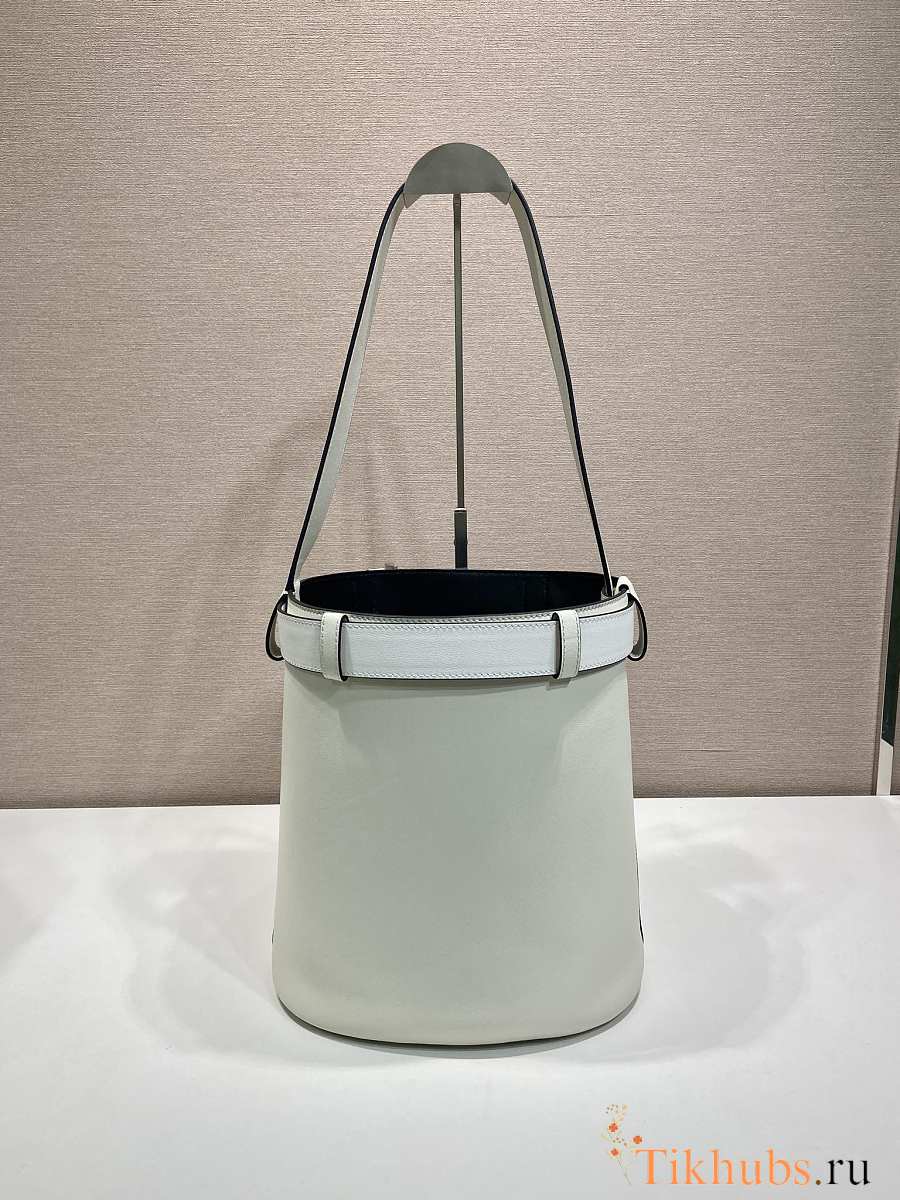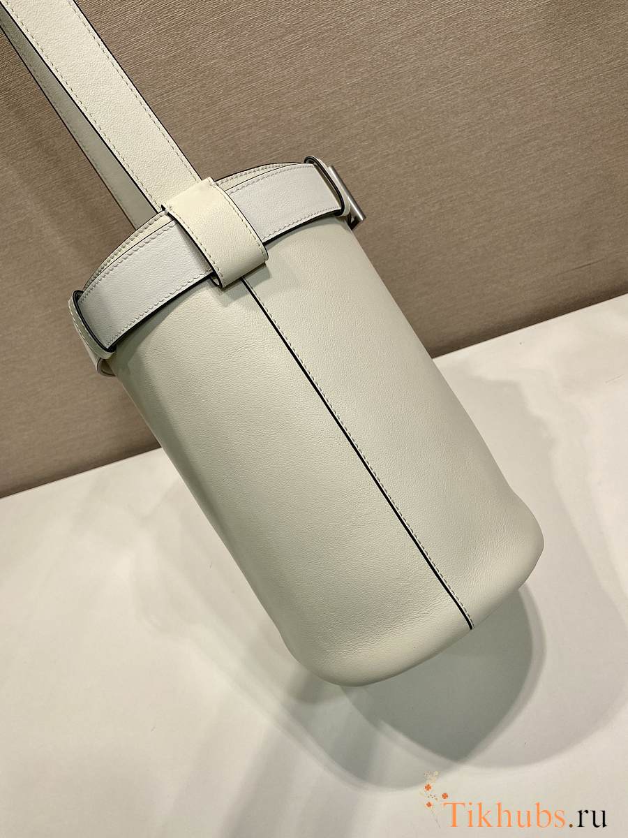 Prada Bucket Bag Belt Buckle Leather White 26.5x29x18cm
