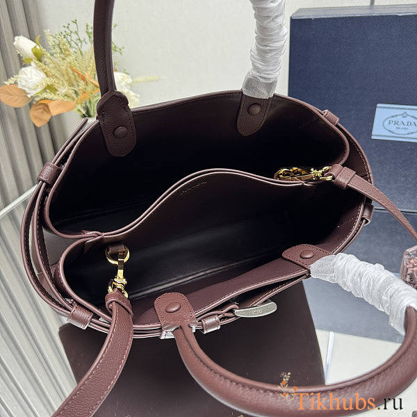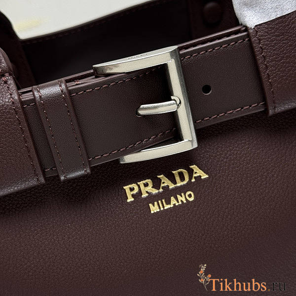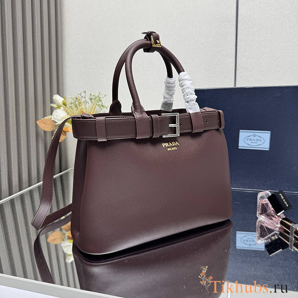Prada Buckle Medium Leather Handbag With Belt Red Wine 32x23x11cm