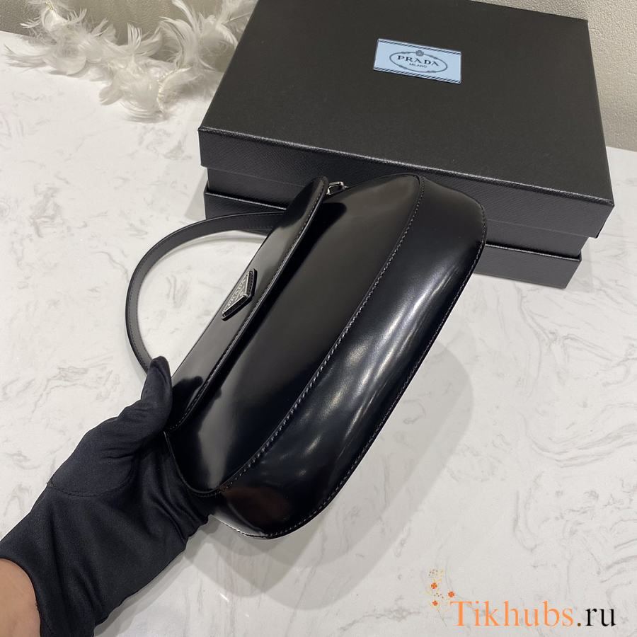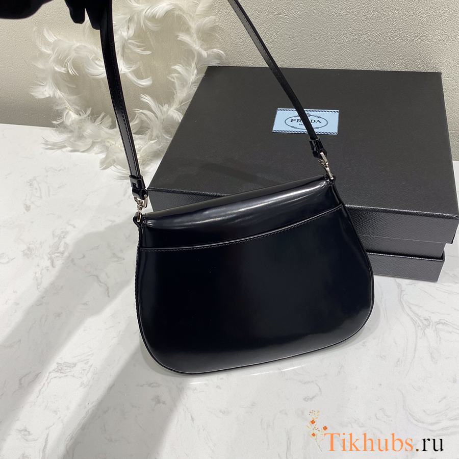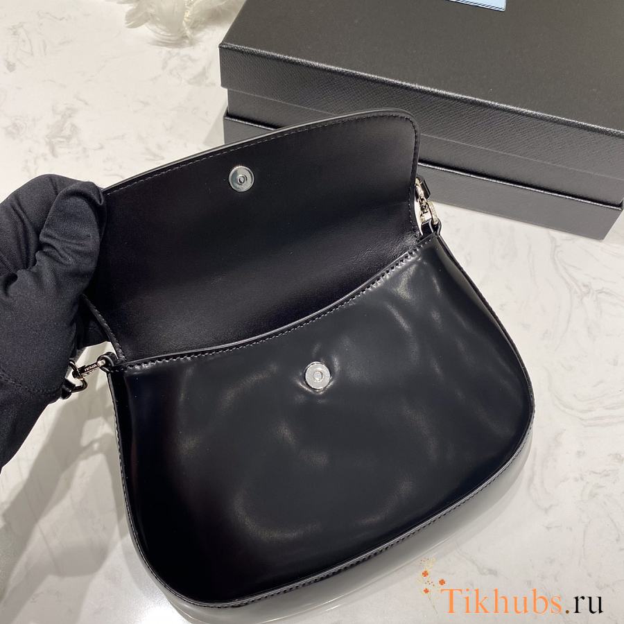 Prada Cleo Brushed Leather Shoulder Bag Black 22x15.5x4cm
