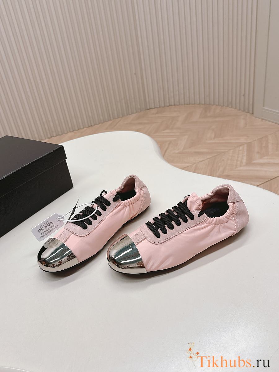 Prada Collapse Re-Nylon Suede Sneakers Metal Pink