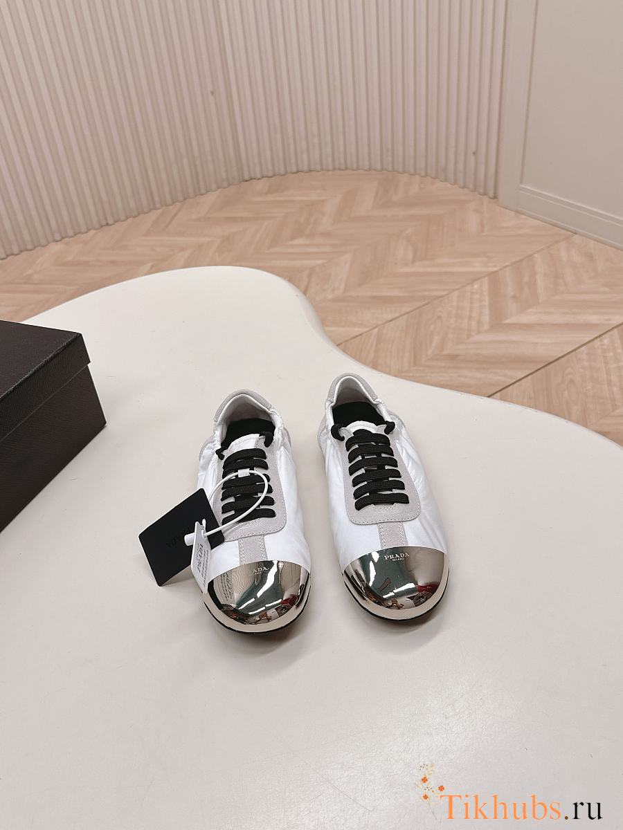 Prada Collapse Re-Nylon Suede Sneakers Metal White